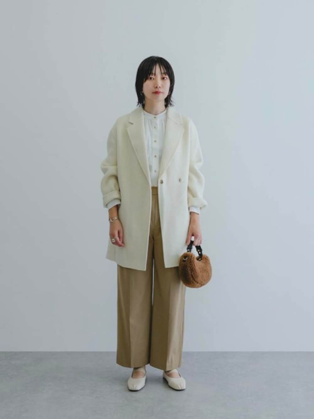 白×ベージュでまとめた大人コーデ。