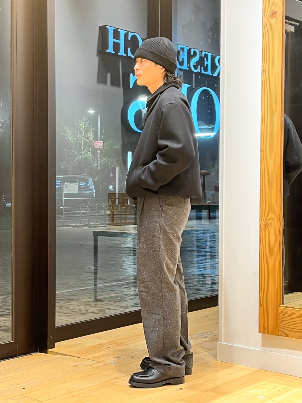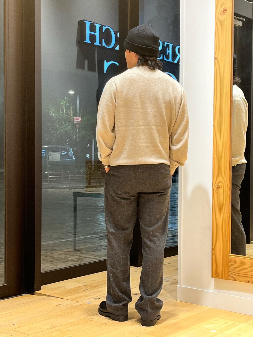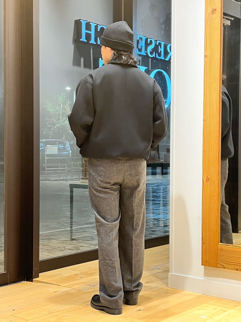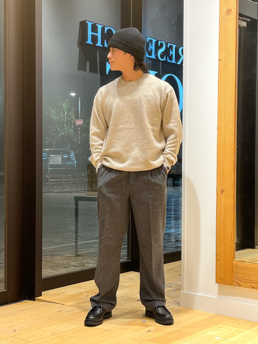 本日は秋冬らしいウールミックス生地とニットのスタイリングにしてみました。