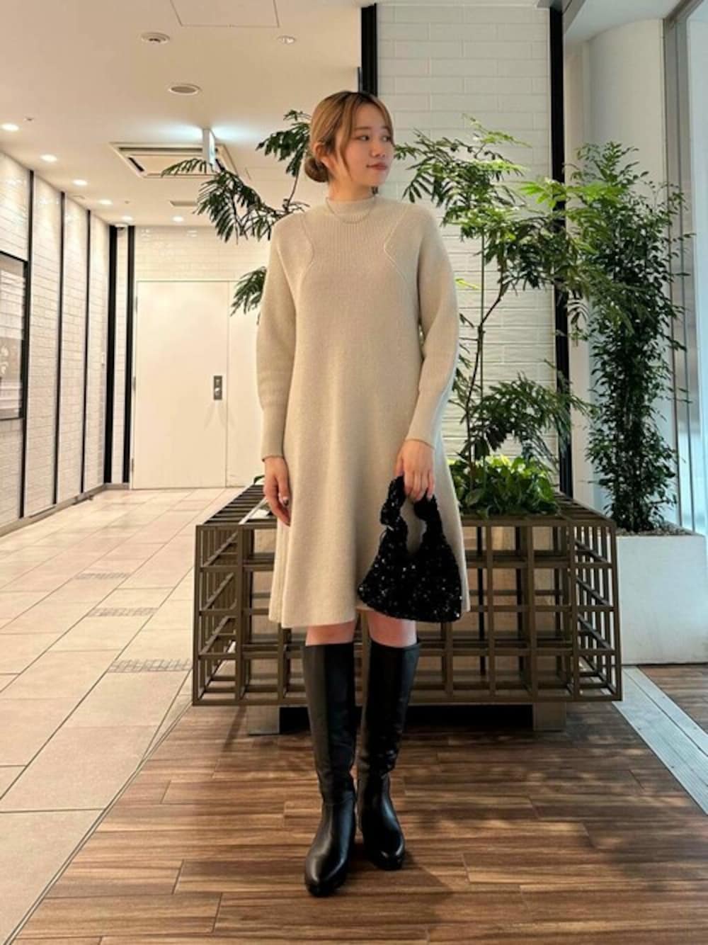 シンプルだけど編み地やミニ丈がポイントになり一枚でも着映えするワンピース!