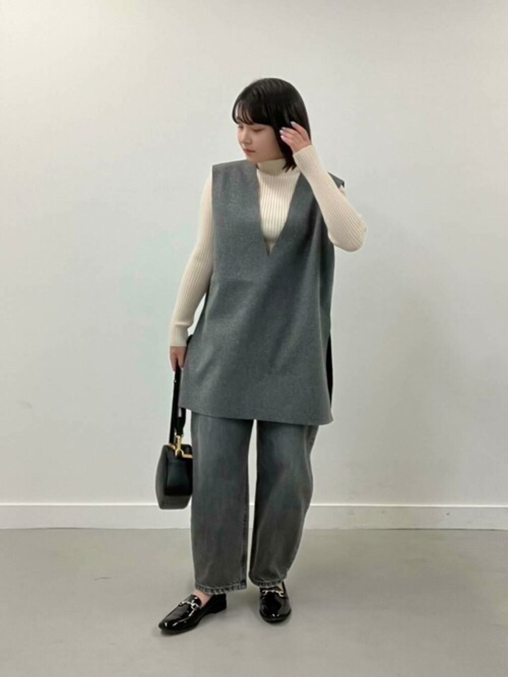 今回は同色系のデニムを合わせましたが、スカートとの相性も抜群の万能アイテムです!