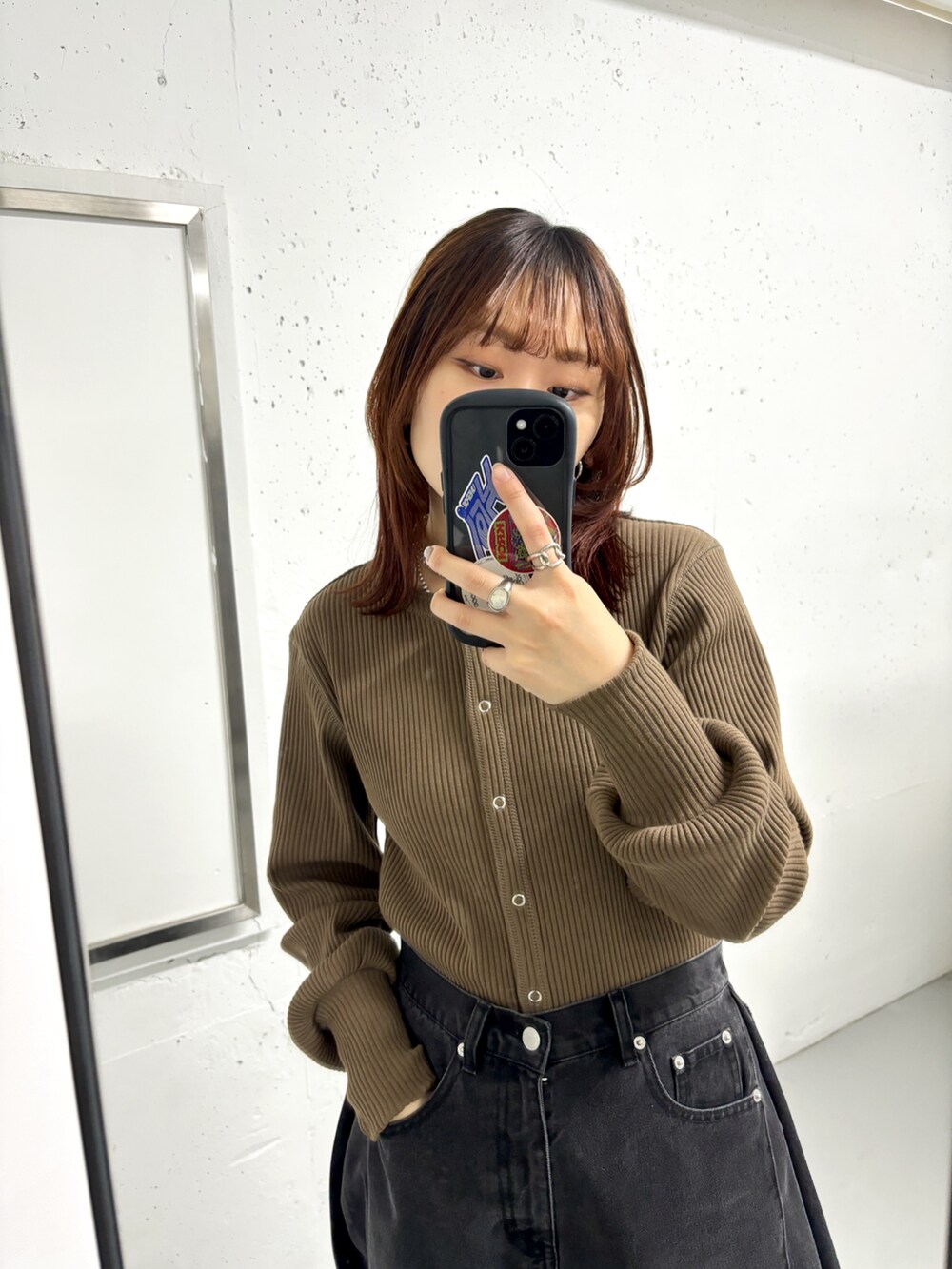 カーディガンはすっきり着れて、袖口のリブデザインも可愛く