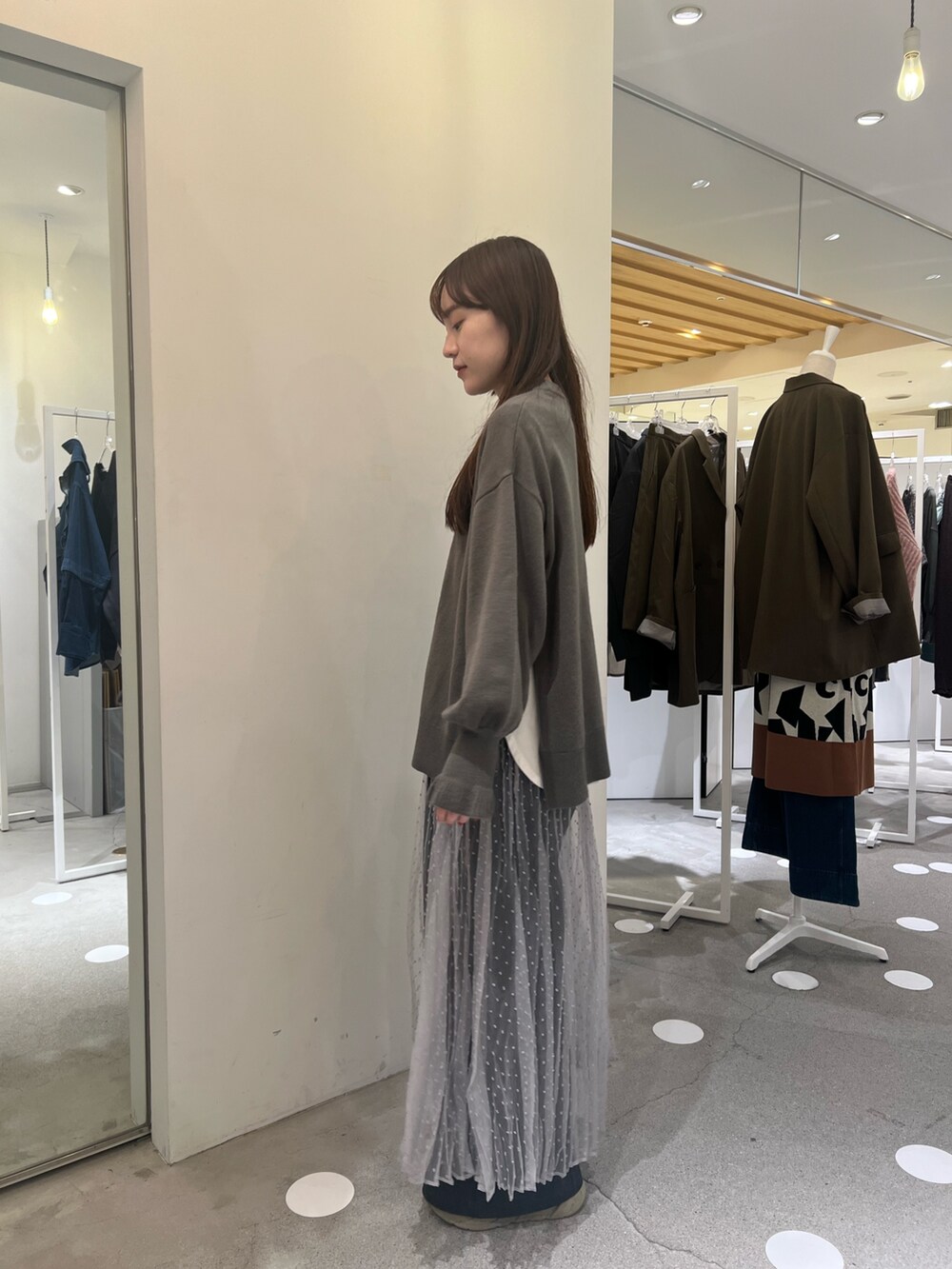 シアーのスカートをレイヤードすることで、シンプルすぎずお洒落見え◎