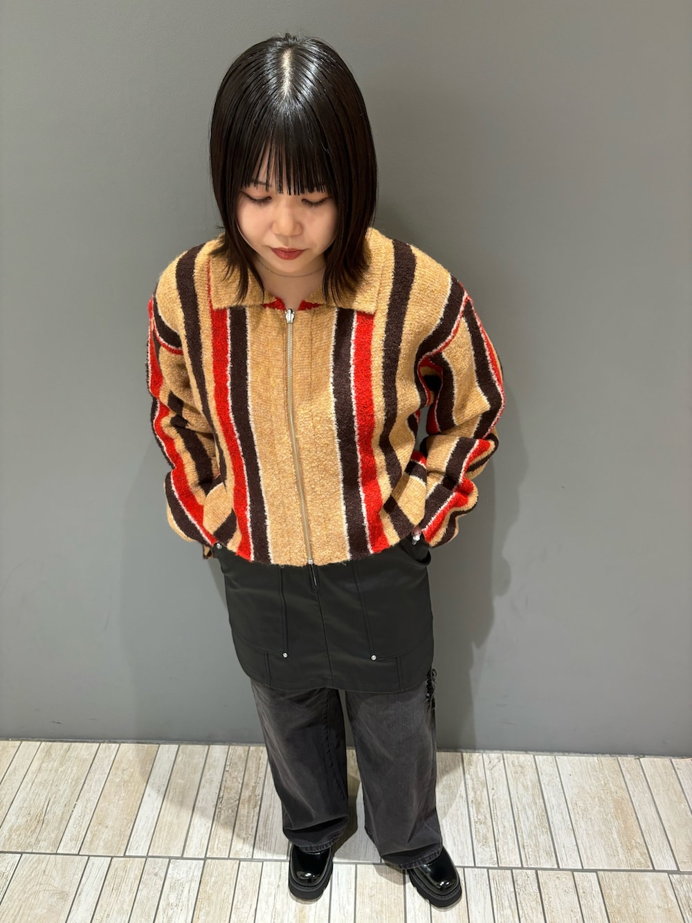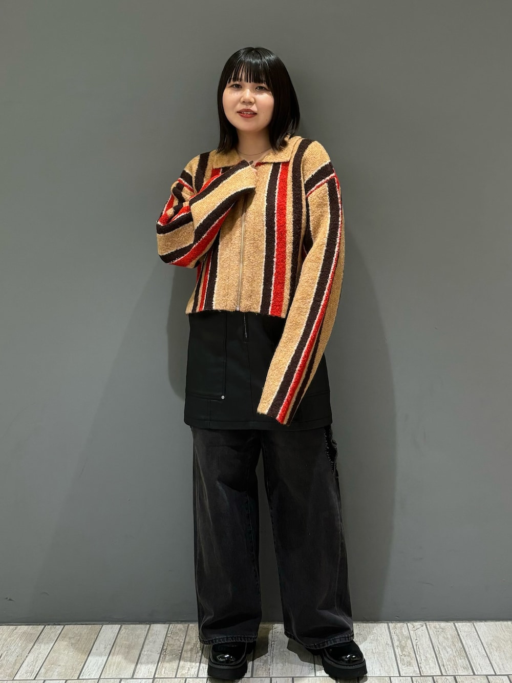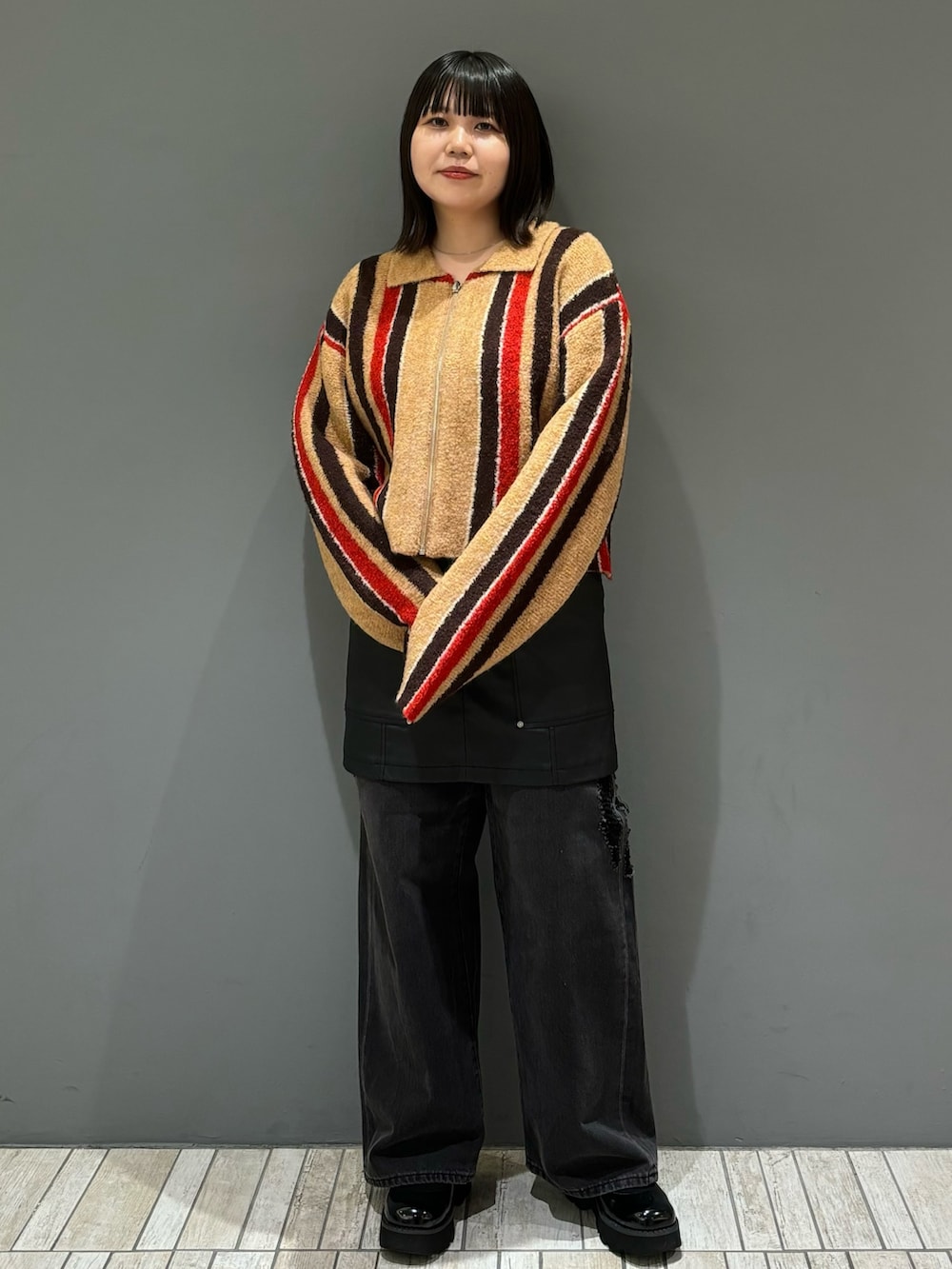 サイズ感は比較的ゆったりしているので、中にある程度厚みのあるインナーを入れても大丈夫です!袖丈が長く、着丈が短くなっているので全身のバランスが取りやすいデザインなのもGood👍🏻