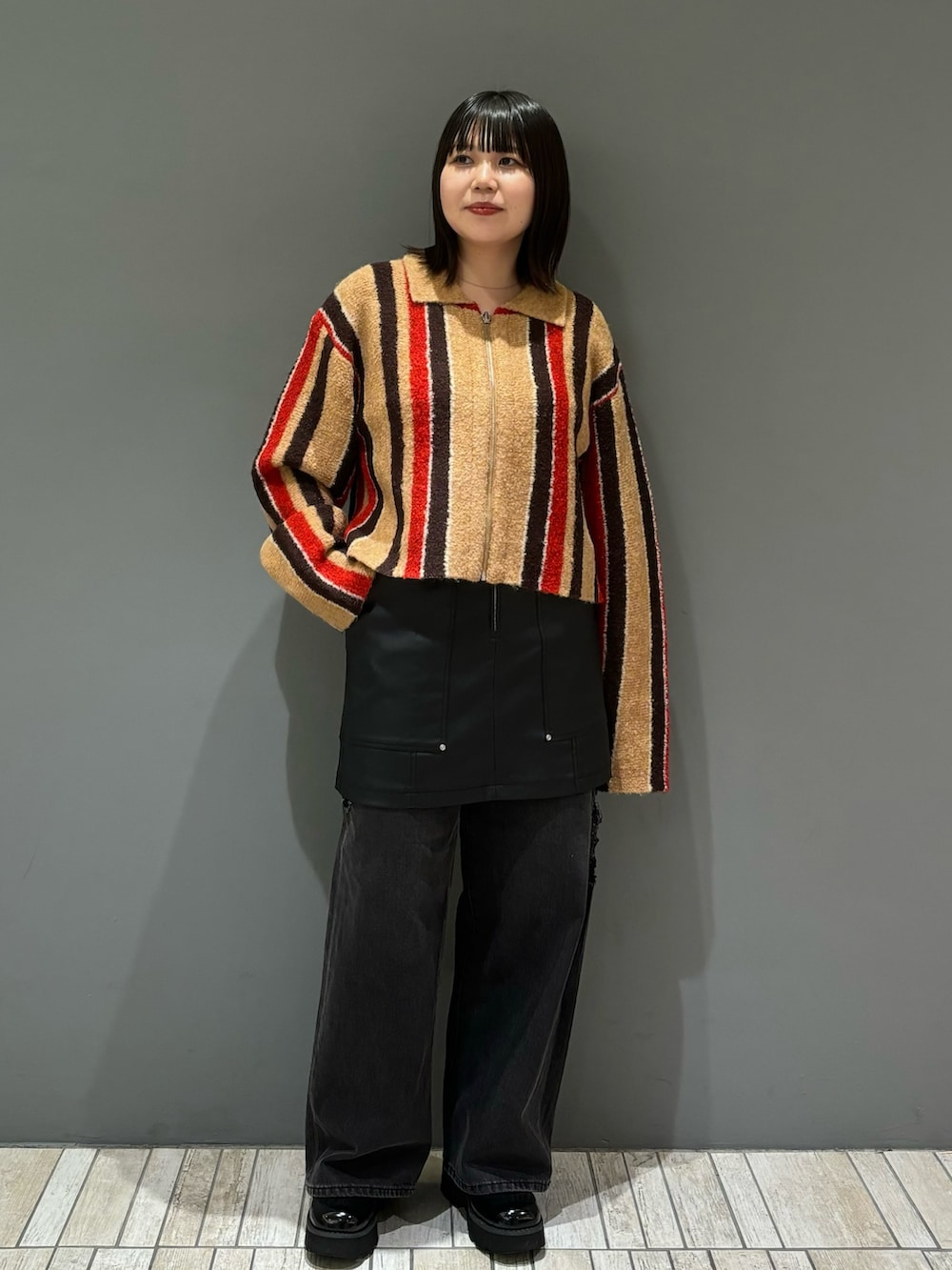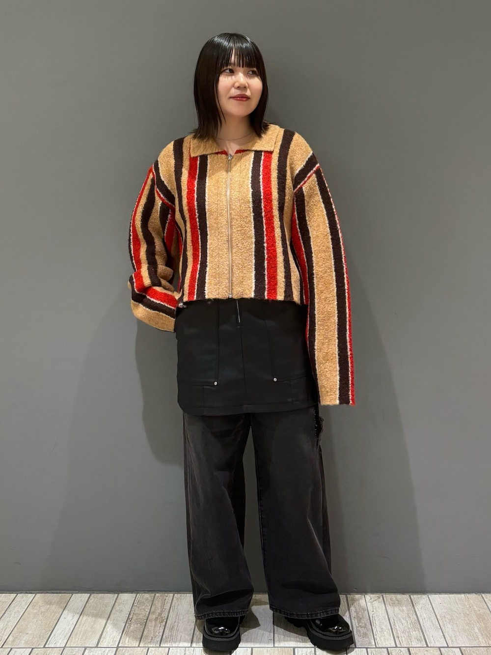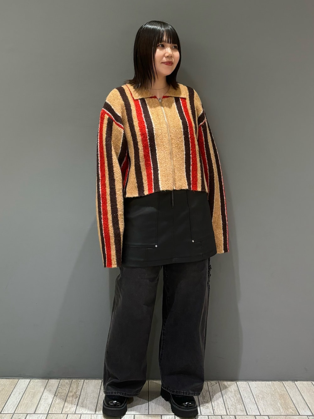 ミニ丈としてはもちろん、パンツをレイヤードして履くスタイリングも今年らしくてGOOD👍🏻伸縮性がある生地なので履きやすいのもおすすめポイントです!