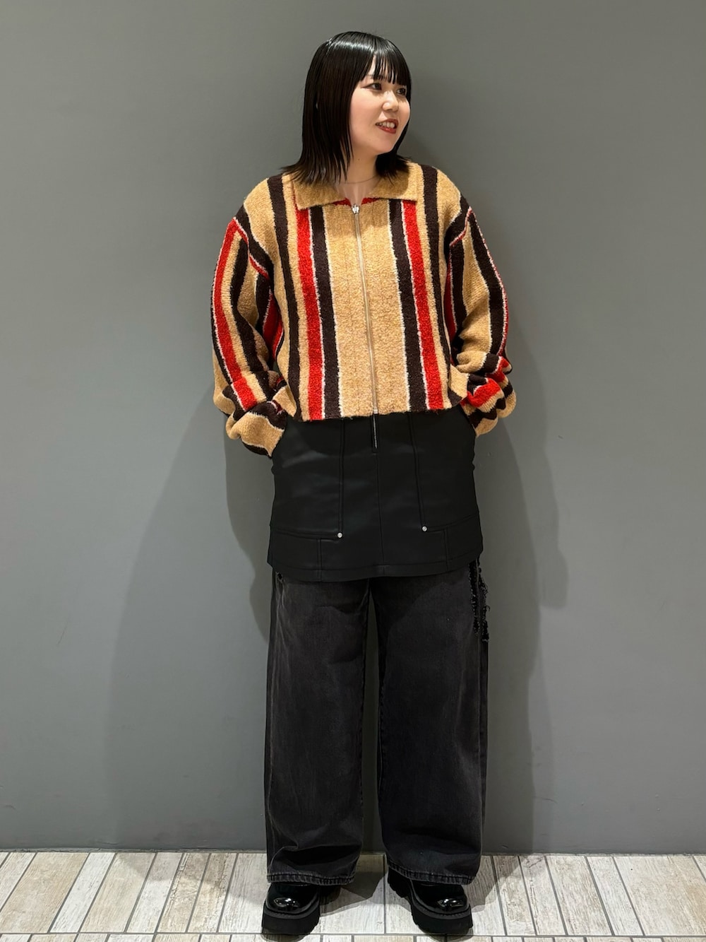 今回は、ベージュ×ブラックで秋のモードコーデを組んでみました!ボトムのレイヤードスタイルで流行りも取り入れてます✊🏻