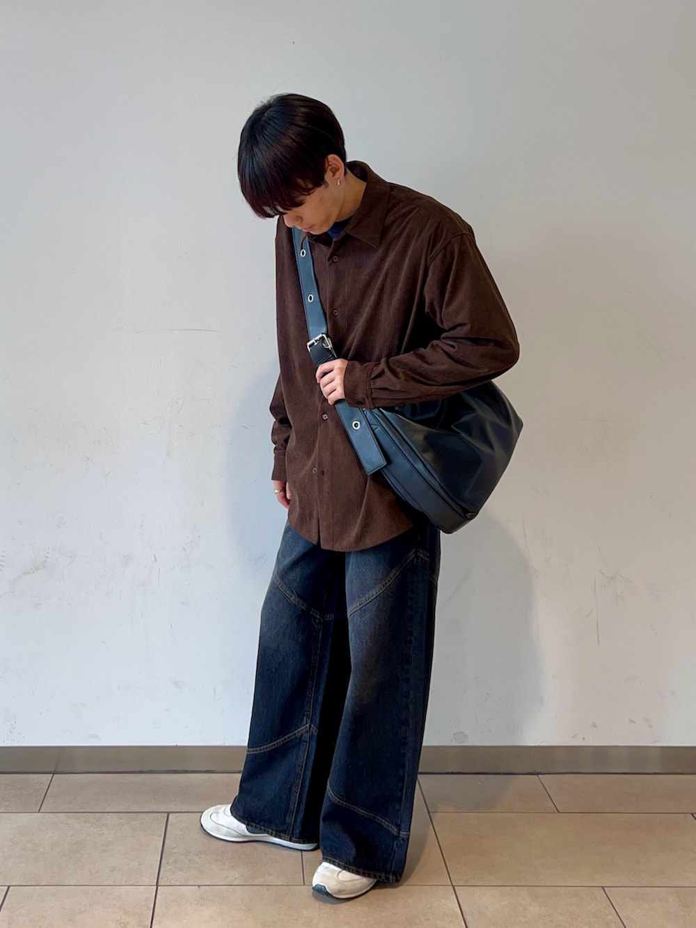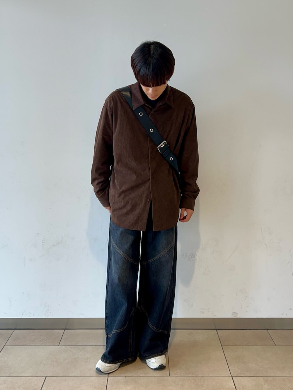 カジュアルな印象のコーデュロイシャツは落ち着いた色味のブラウンで、カジュアル感と大人っぽさが両立されています!🐿