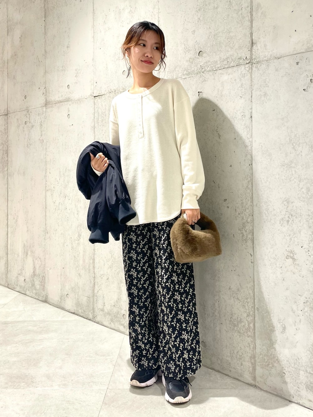トップスが荒めなサーマルっぽい生地感なので、リバーシブルブルゾンのフラットな面を表にしてみました。