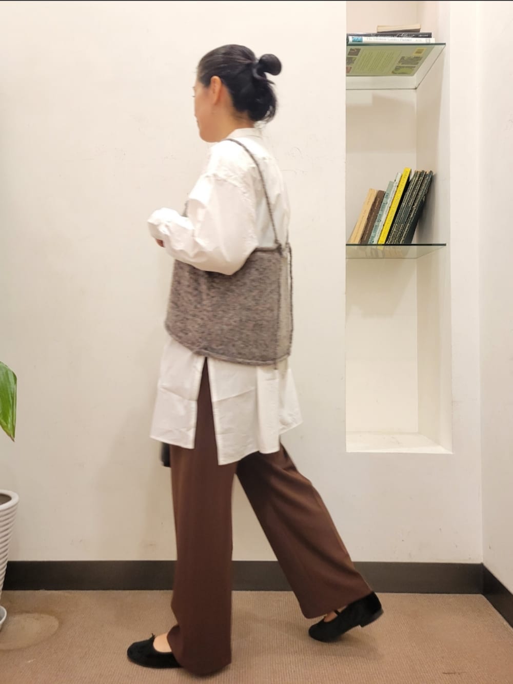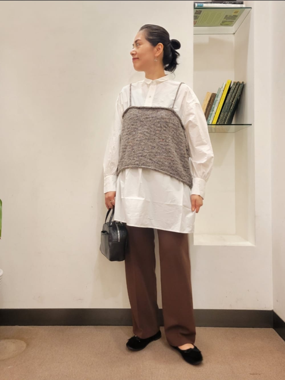 シャツはゆったりで生地に少しハリがあって
