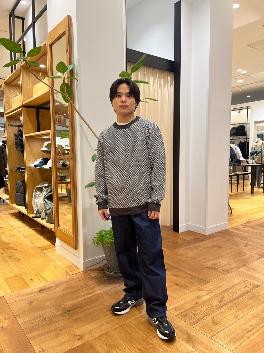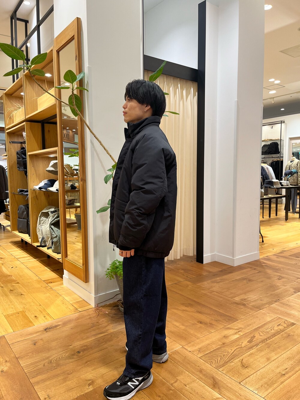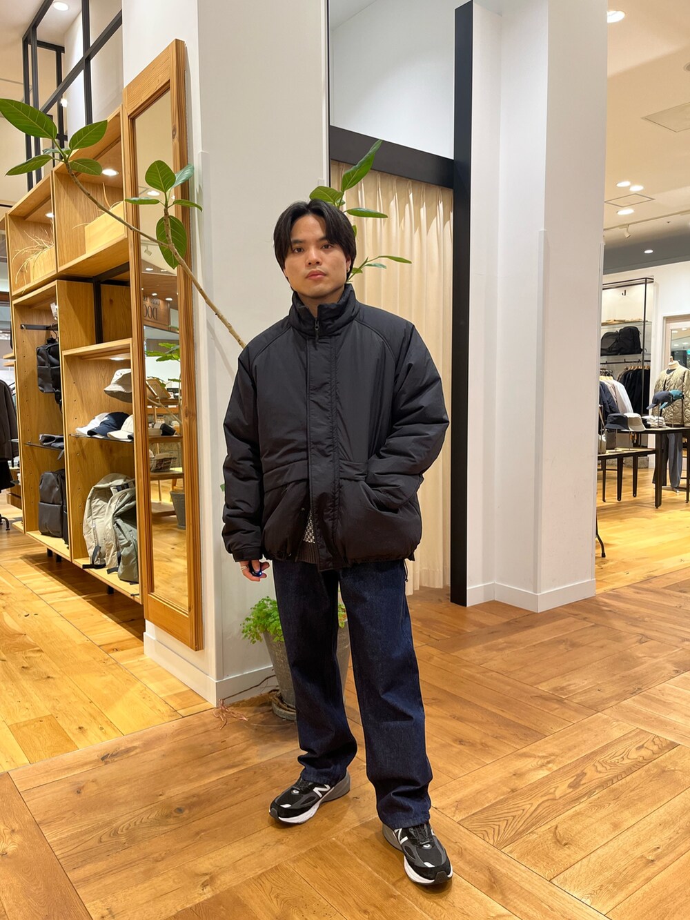 ・かなりカジュアルなスタイルで組んでみました。サイズ感を大きくする事で今っぽさを出してダサくない雰囲気にしています。