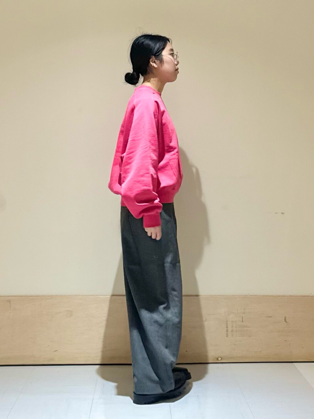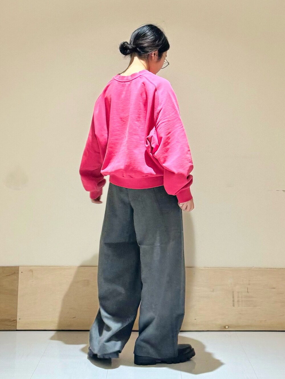パンツ、スウェットとどちらもゆるっとしたシルエット感がこなれ感を出してくれて、着るだけでおしゃれ見え◎