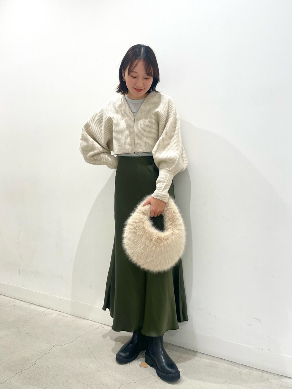 サテンスカートとファーのバックで秋っぽい素材をたくさん取り入れたコーディネートにしました♪