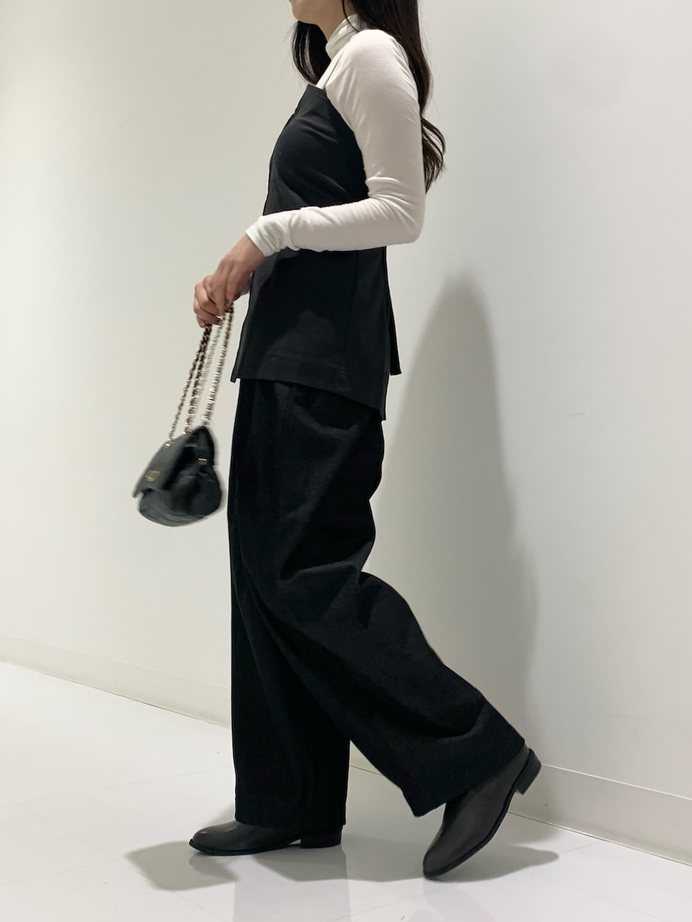 ボリュームのあるデザインが素敵なのでトップスはすっきりめのアイテムを合わせてメリハリのあるスタイルもおすすめです◎