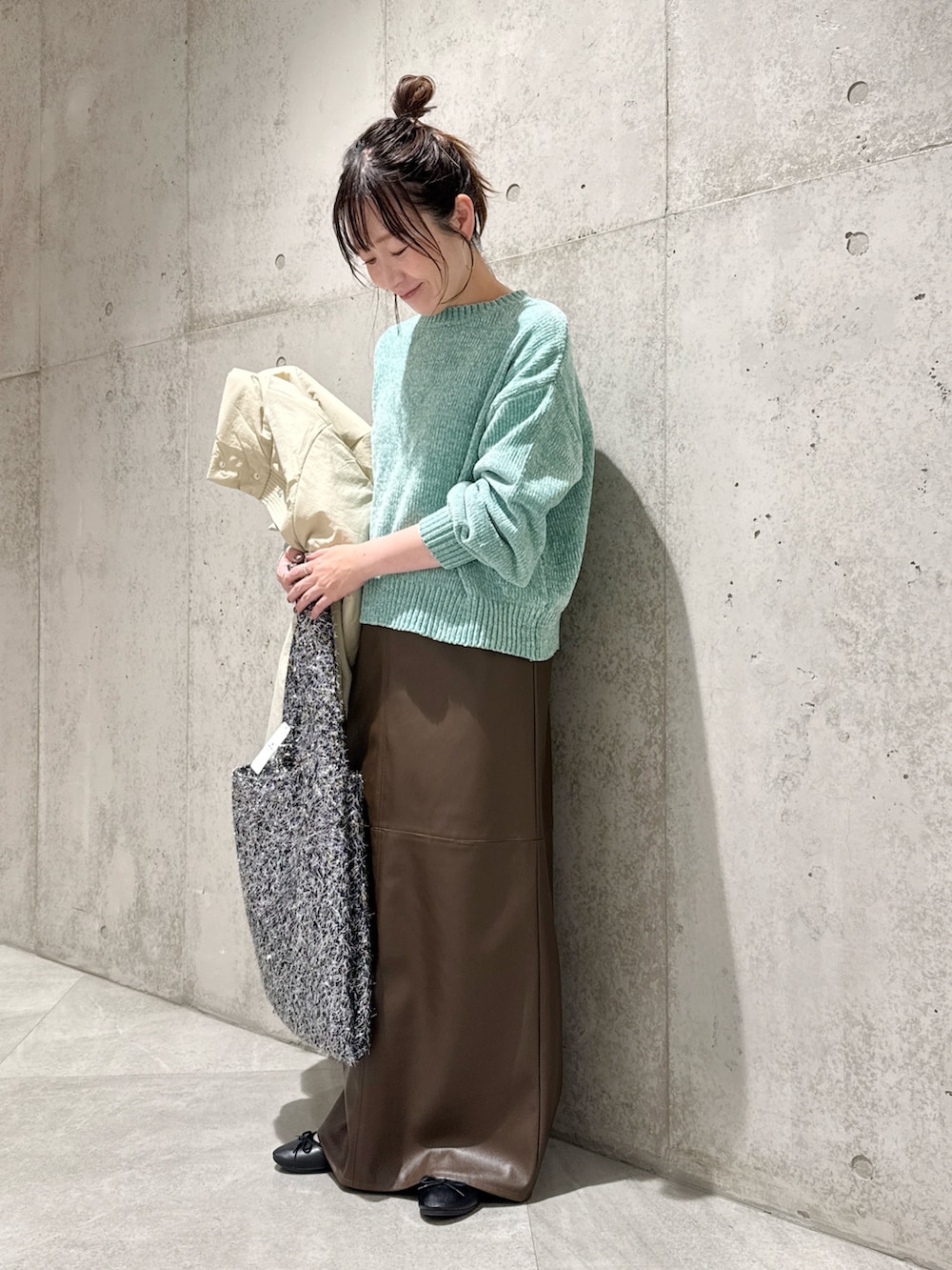 今回は、ミントカラーのニットをアクセントにしたコーディネートです。