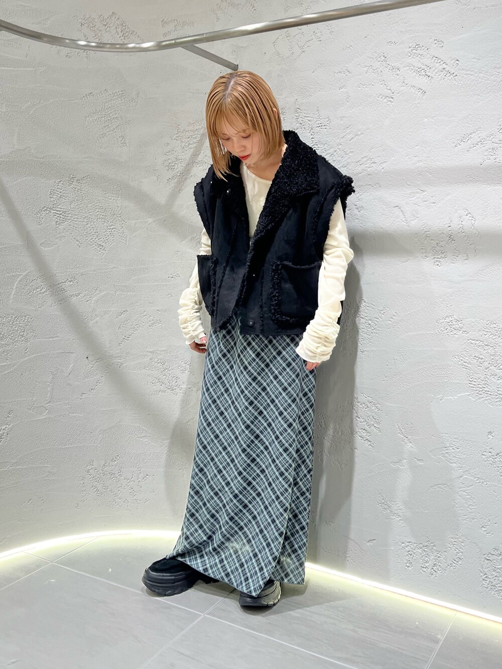 チェックナロースカートは裏地付きで再入荷してます〜!狙ってる方はお早めに!