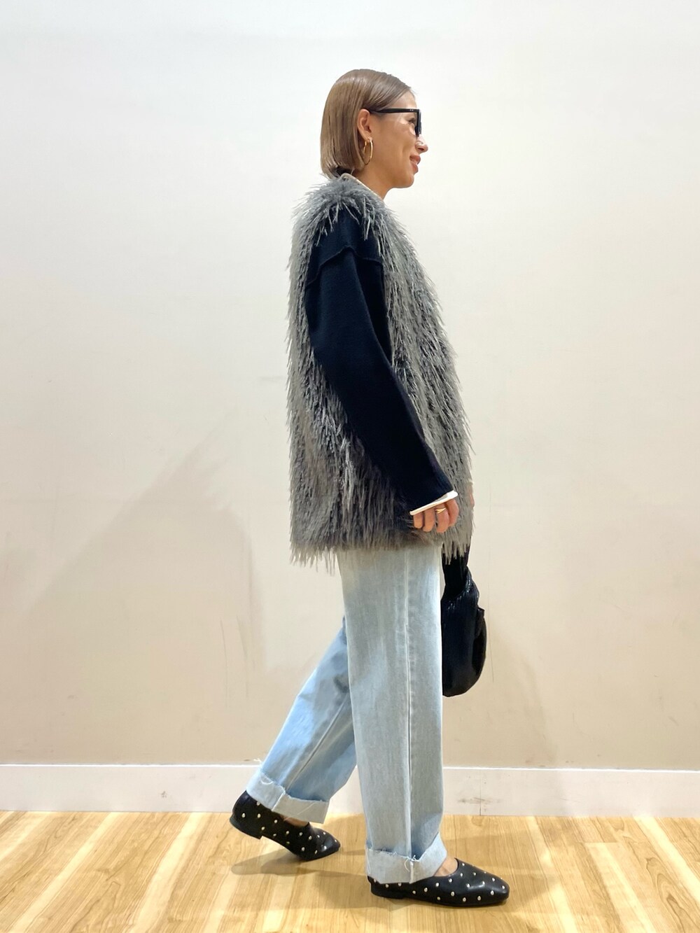 ニットは首元とお袖の配色がコーデのポイントに👌