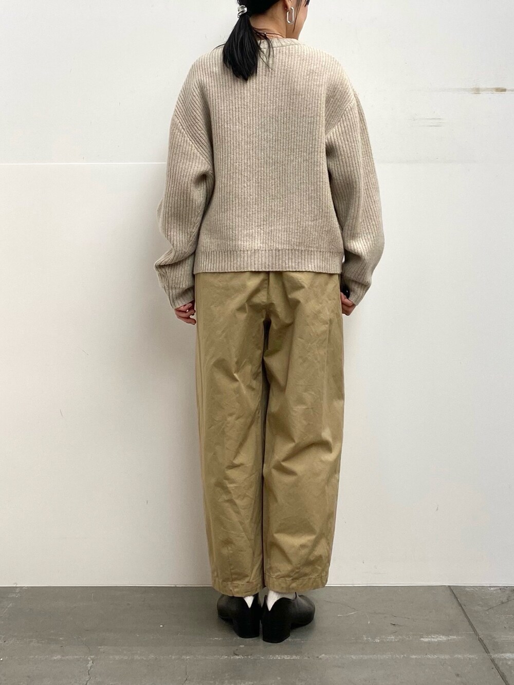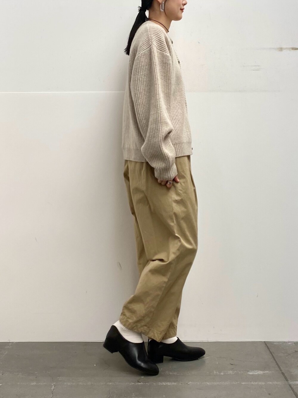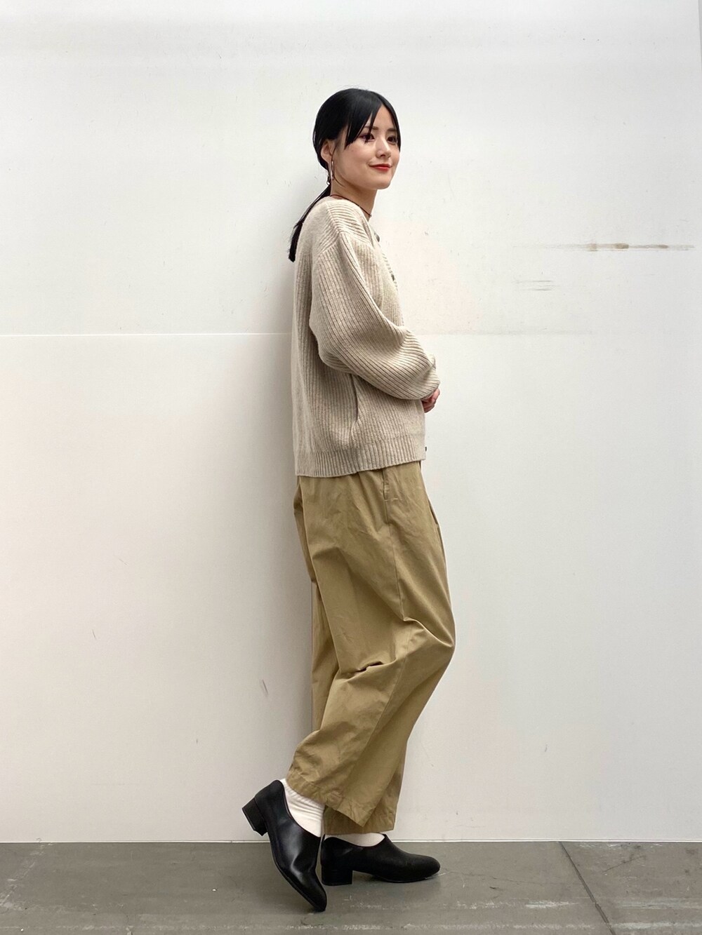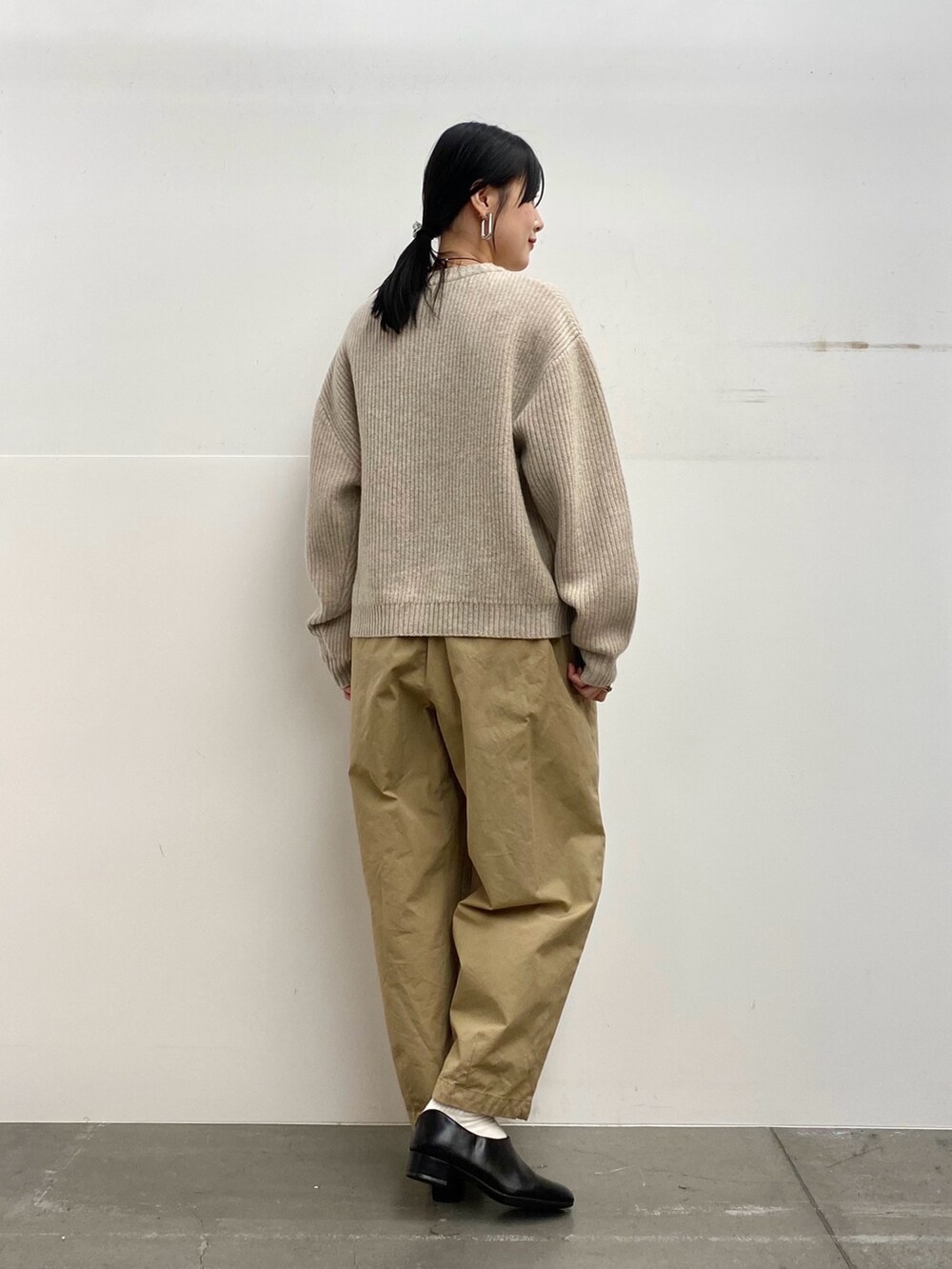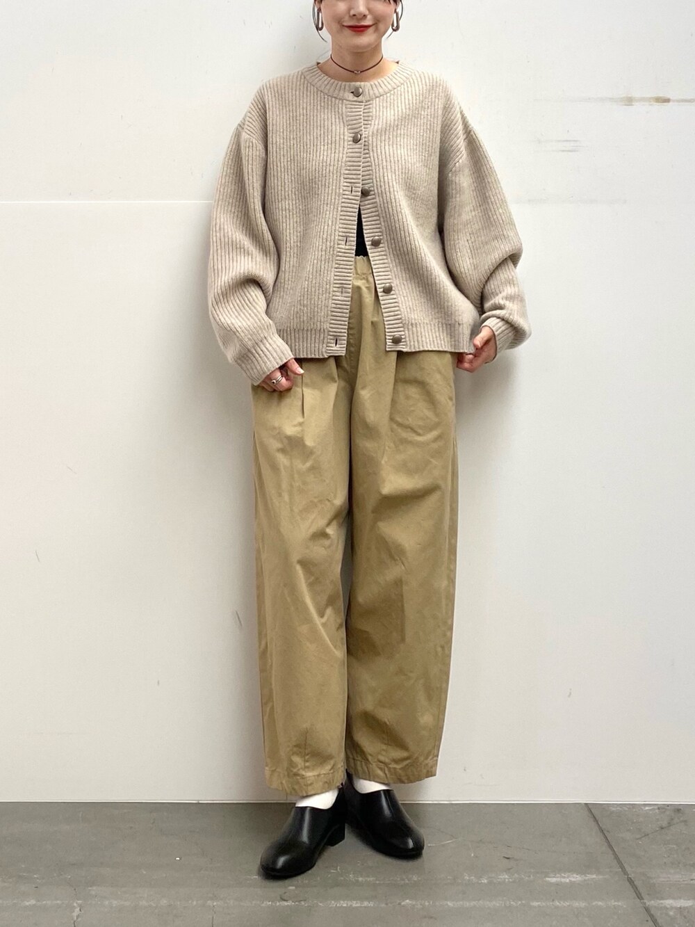 パンツはクロップド丈でたぽっとしたシルエットがかぐれらしいナチュラルな印象に。