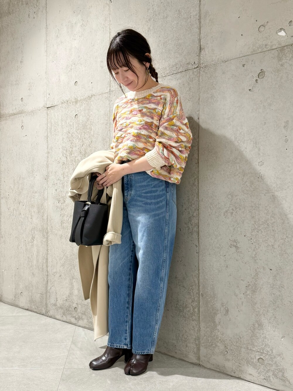 今回は、カラフルなニットを差し色にした大人カジュアルコーディネート。