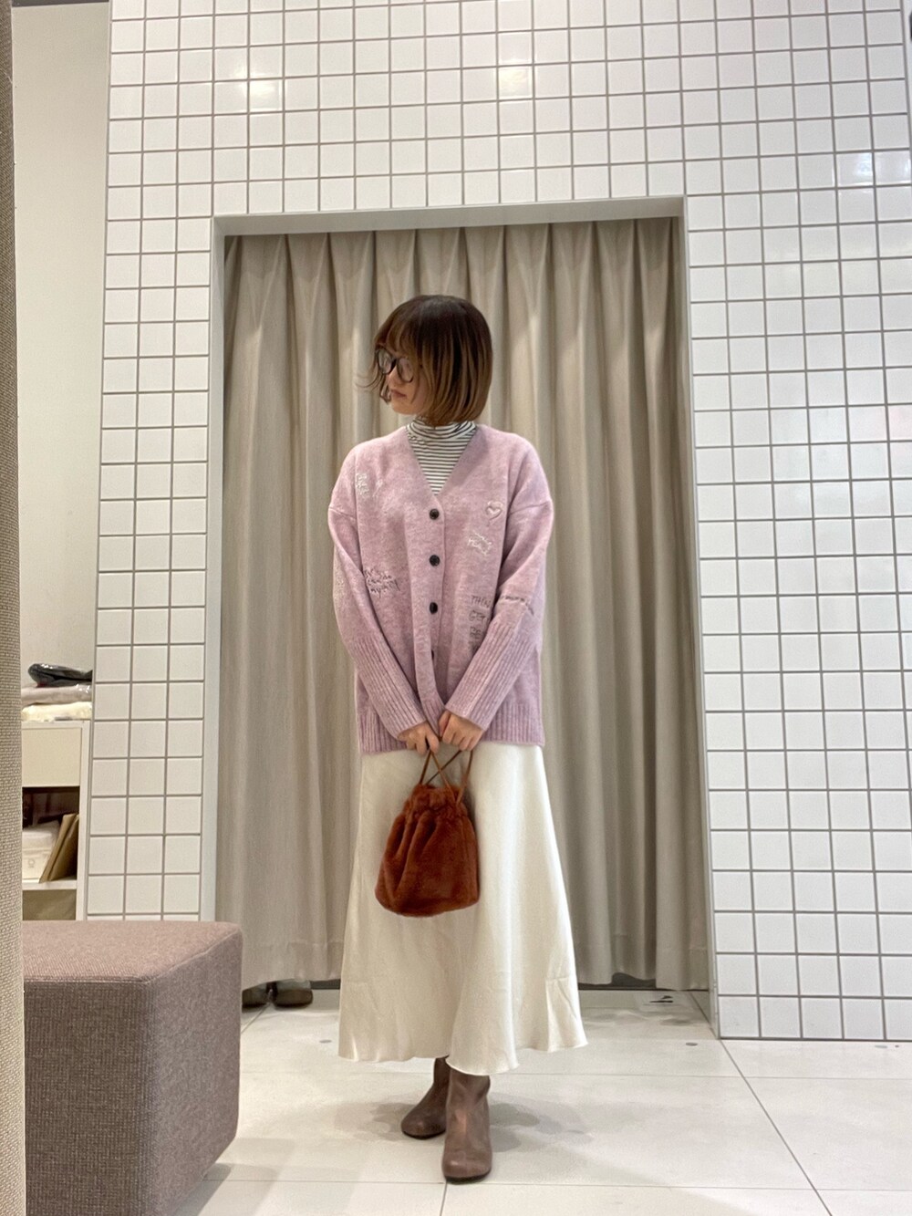 今回は大人気のシシュウVネックカーディガンが入荷したので、中心にコーディネートを組んでみました🌸
