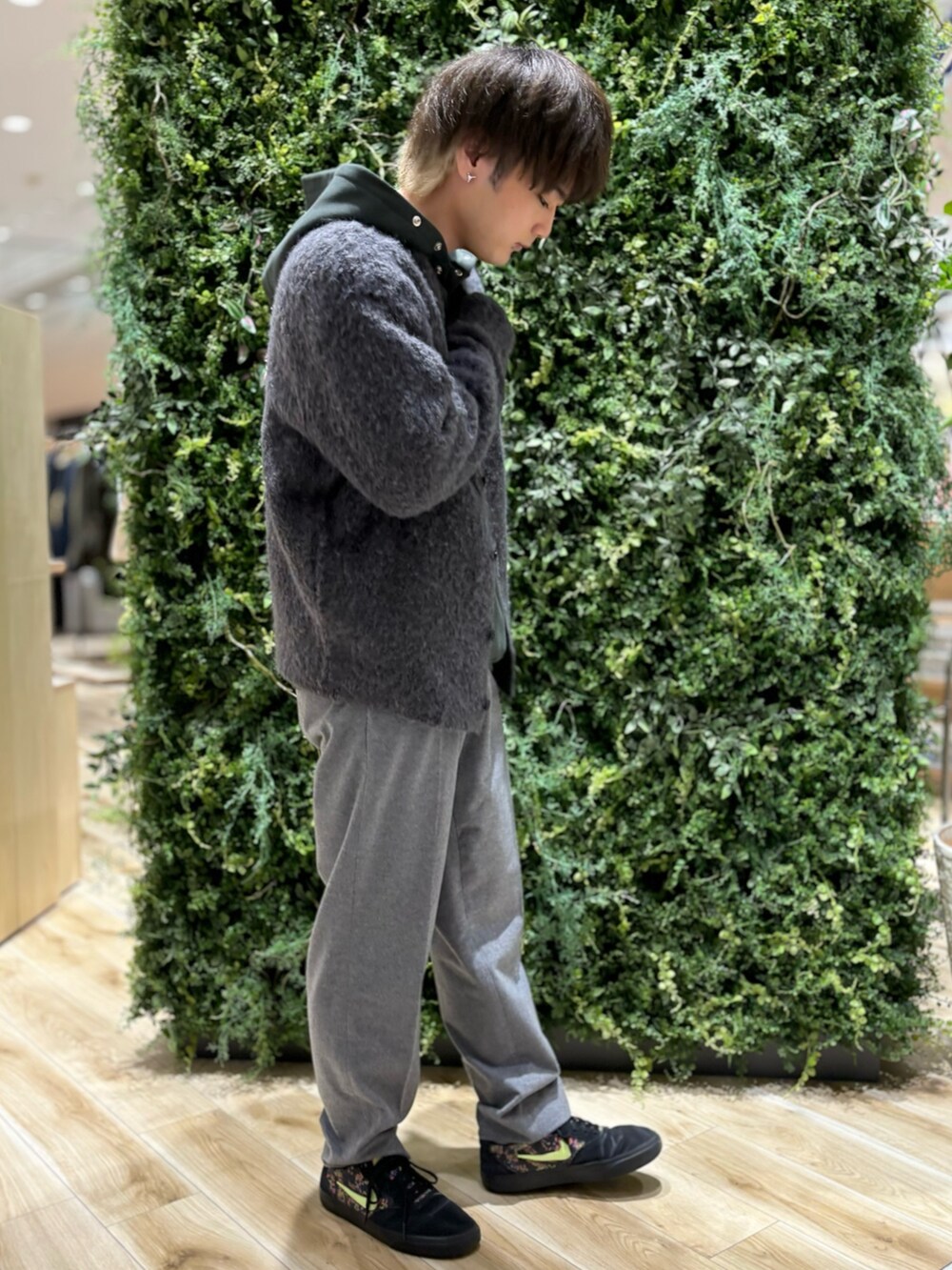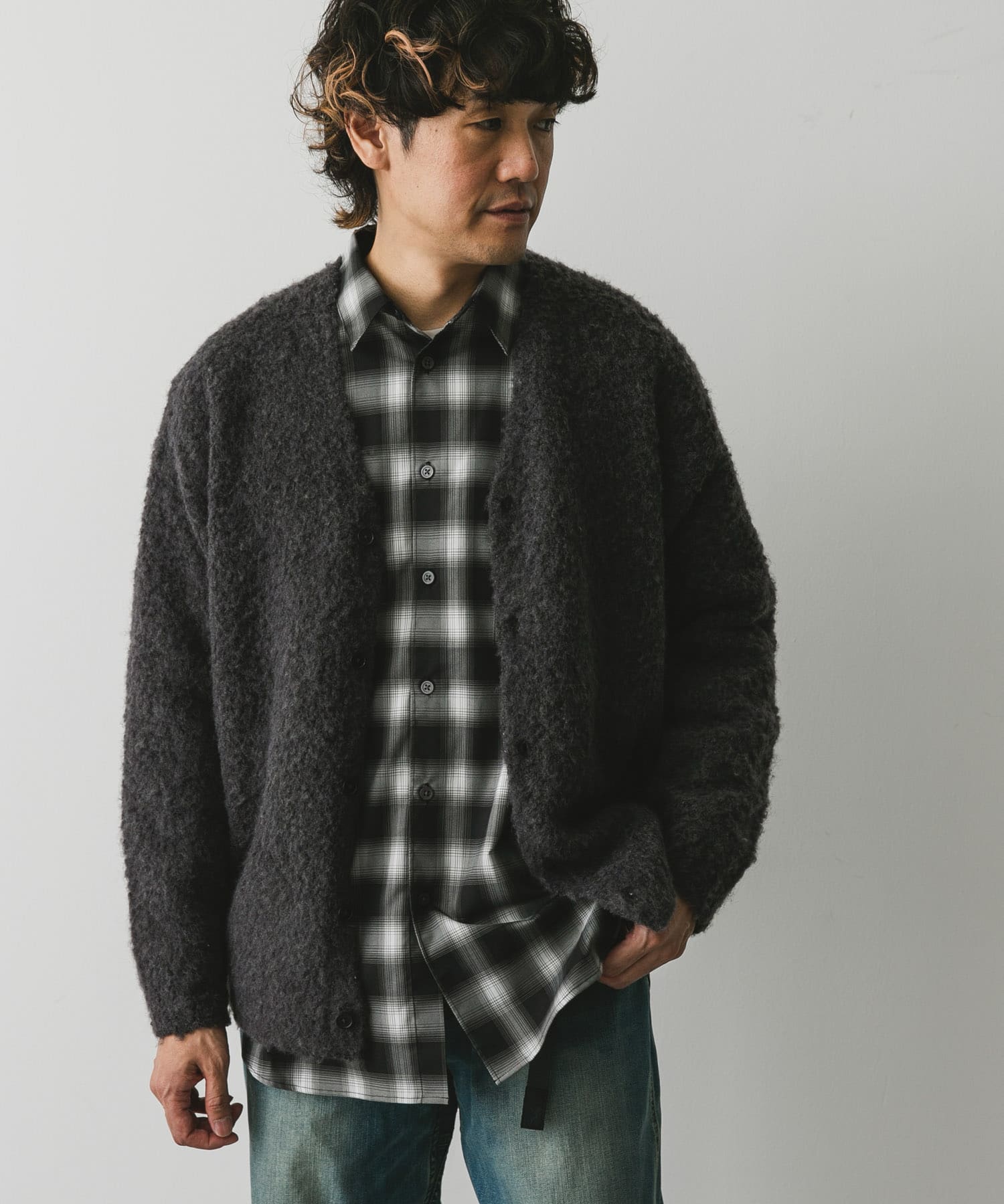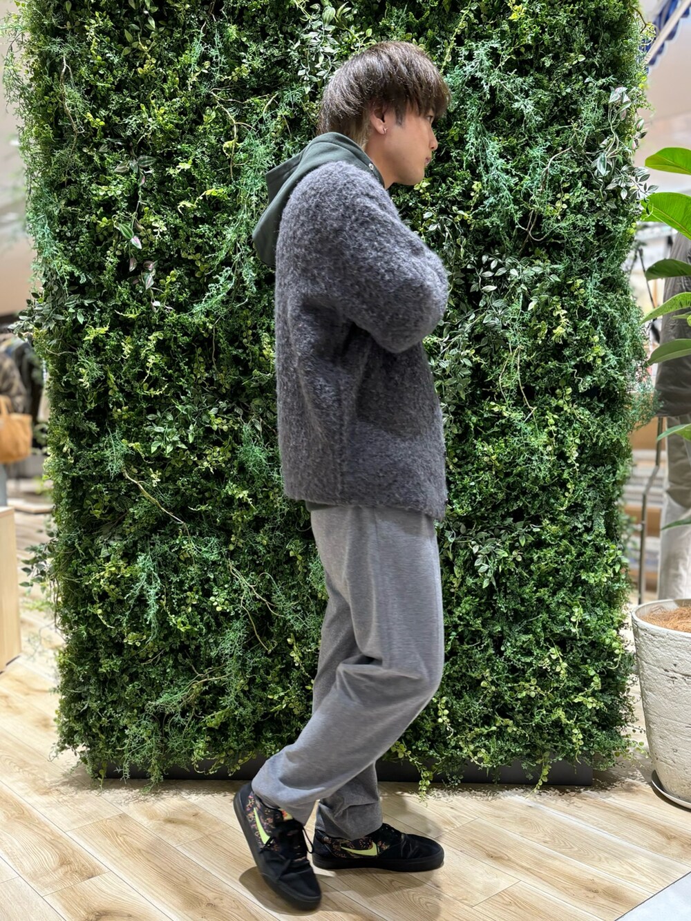 ヘアリーニットカーディガンにChampionのパーカーを合わせて大人カジュアルにスタイリング☕