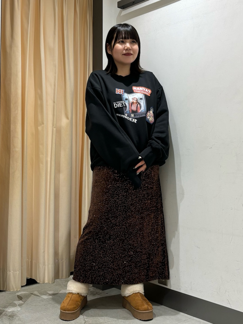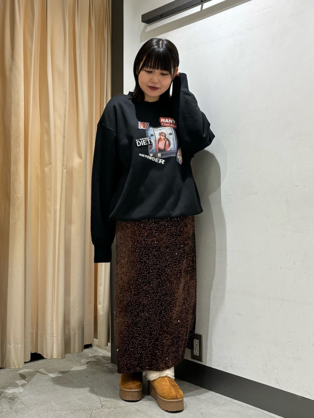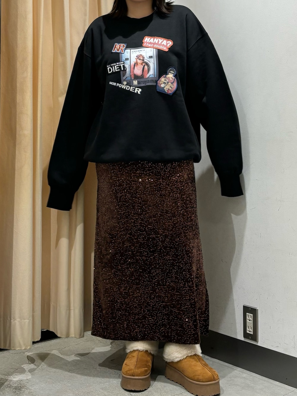 どんなトップスとも相性抜群で使いやすいですが、個人的にはゆったりとしたニットやスウェット合わせで着るのがオススメです🪄