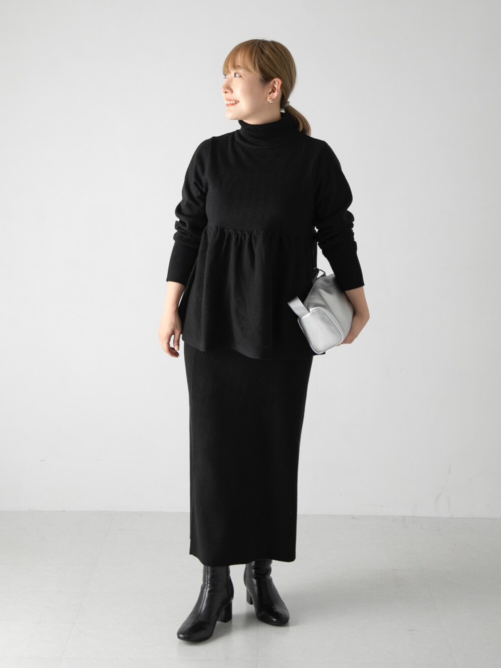 私は首が短めなので、タートル部分は折って着てますが