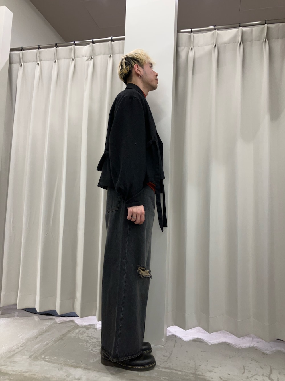 ダメージの入ったヴィンテージ感のあるデニムで、かなりワイドな今っぽいシルエットになっています!