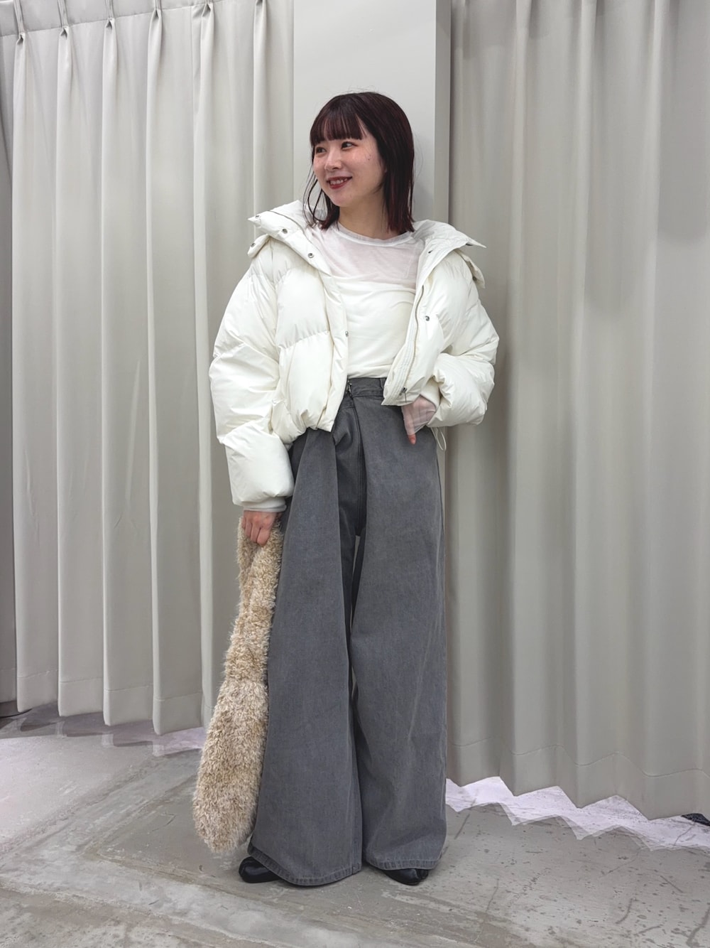 ボトムスに使っているデニムは最近ヘビロテしているお気に入りデニム!ワイドですがシルエットがきれいで、どんなスタイルにも合わせやすいです!
