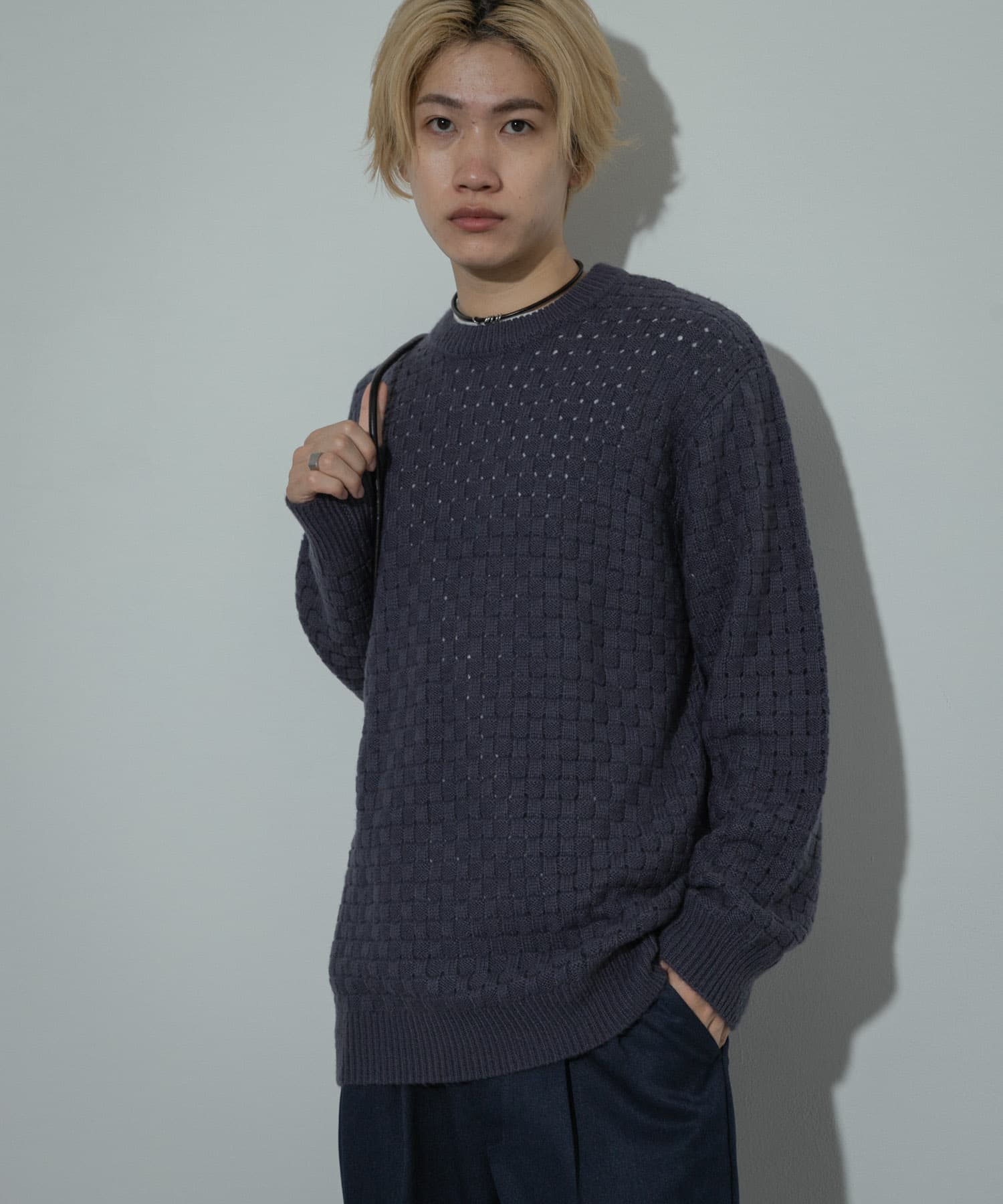 SENSE OF PLACEクロス編みシアークルーネックニット- カラー: