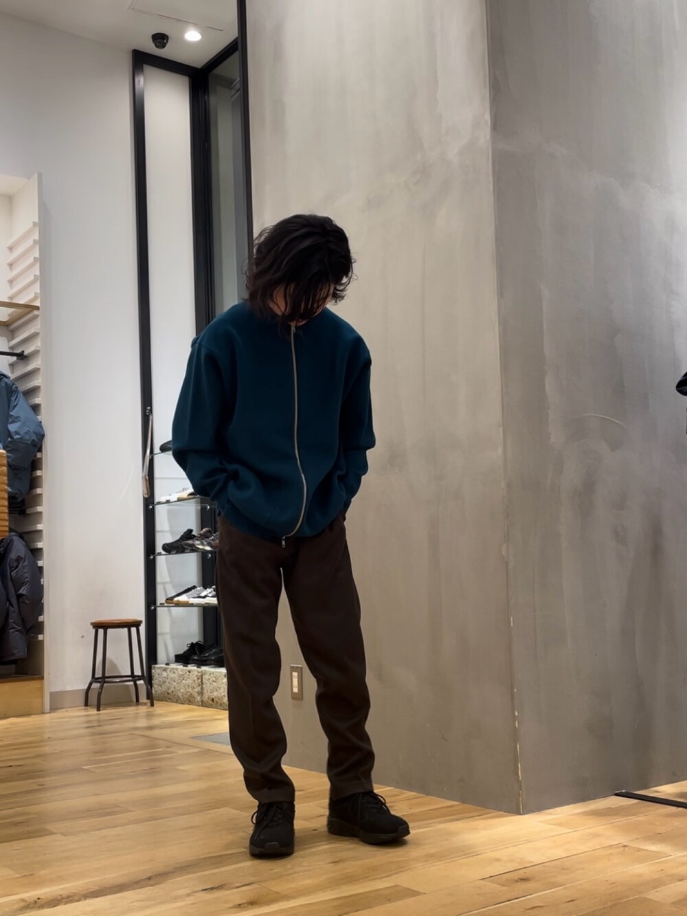 カーディガンは深みのあるブルーが目を引き、ジップを閉めても開けてカットソーを見せても様になってくれます。