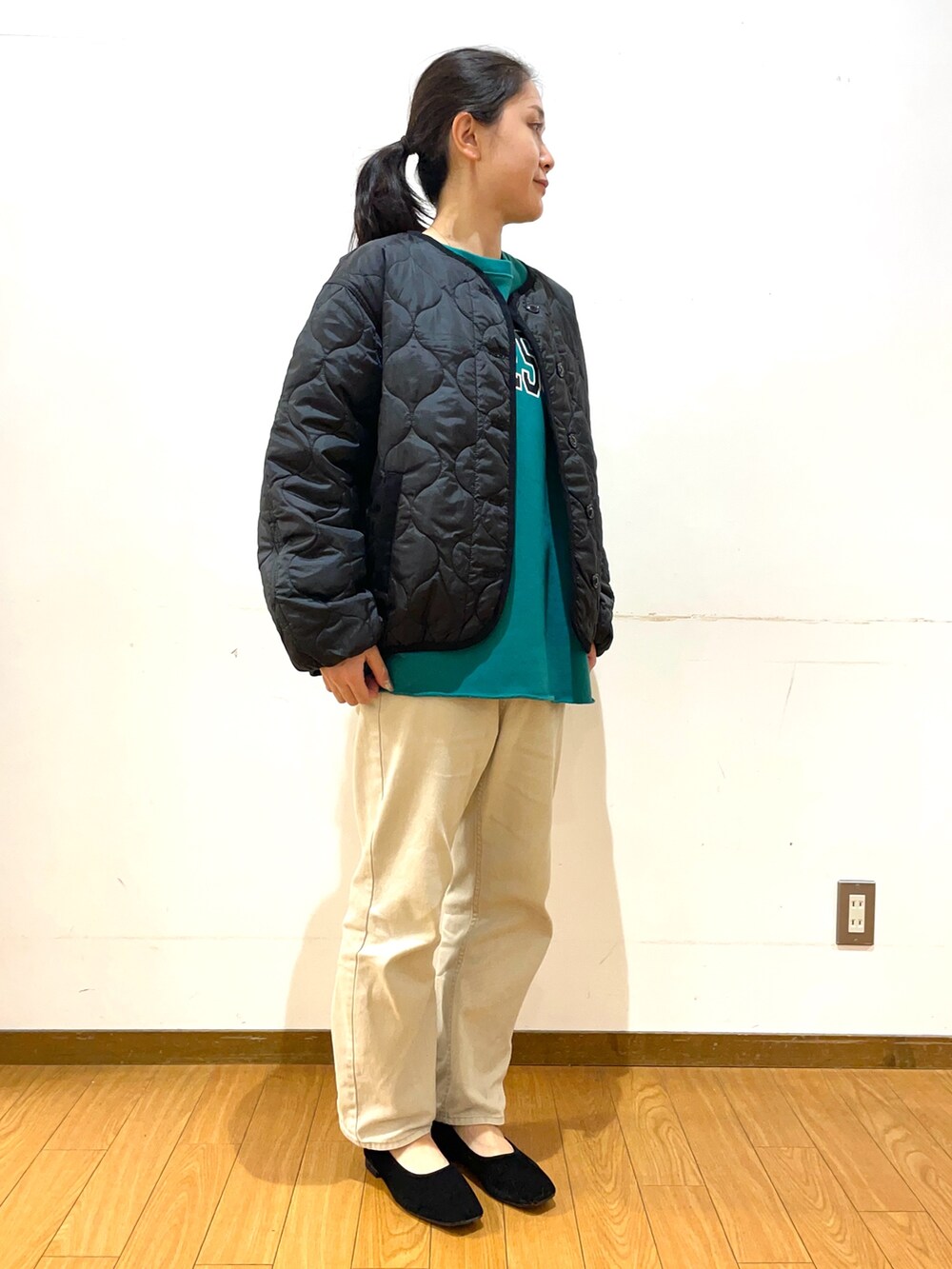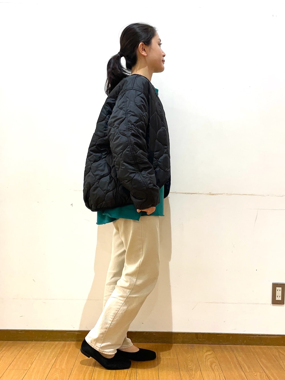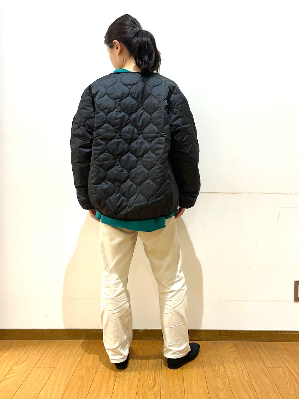 ゆったりしたサイズ感なので、厚手のニットやスウェットの上からでも楽に羽織れます♪丈感は後ろがやや長めになっているのでヒップラインが隠れる長さがあります^_^
