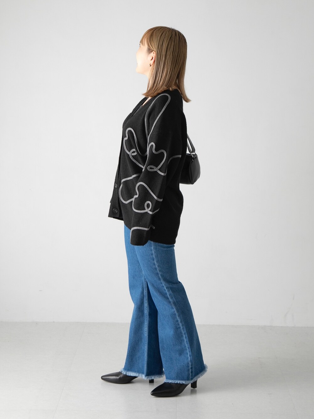 ボトムは細身のものを合わせてスタイルアップ◎