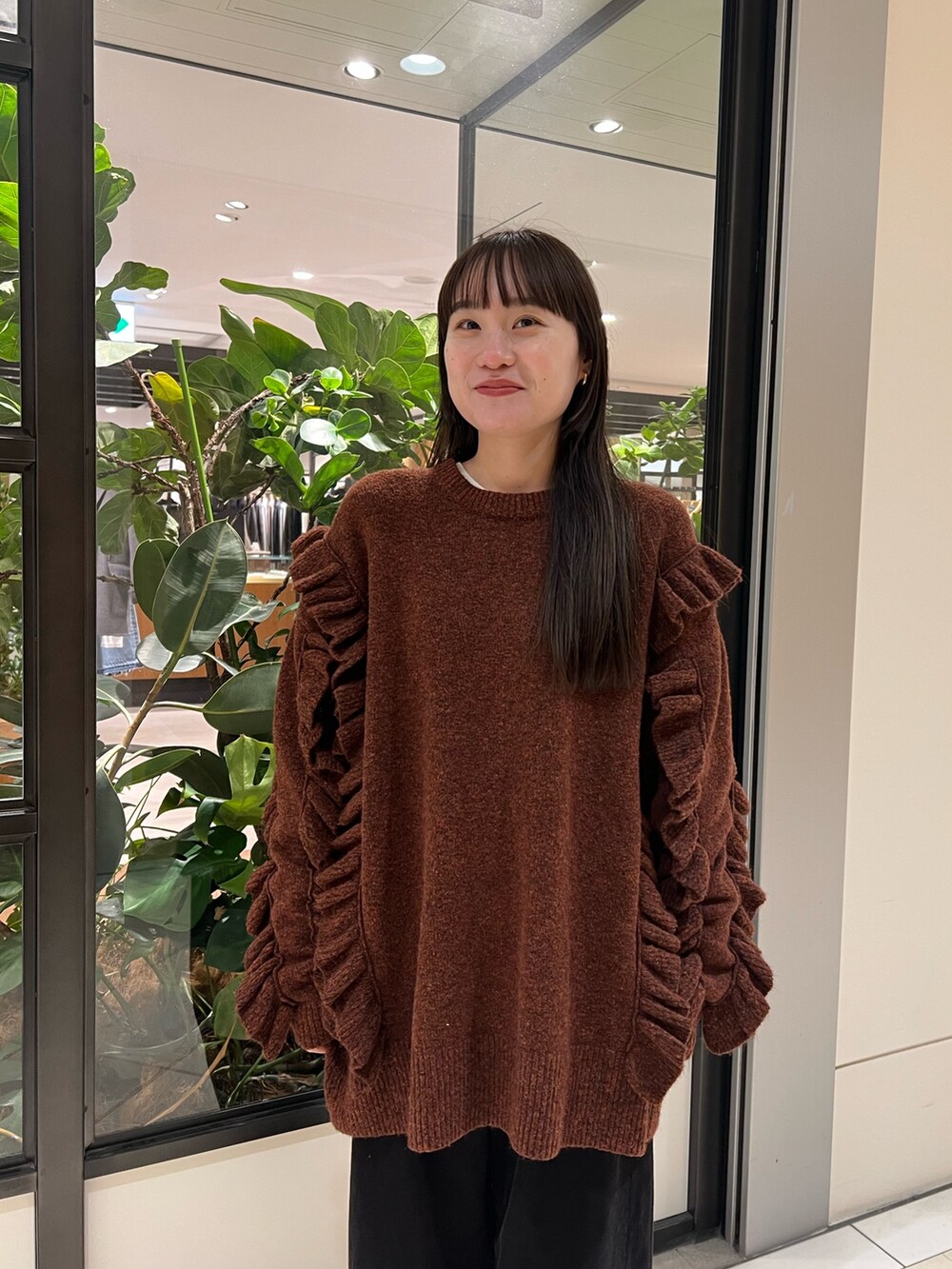お袖のフリルがポイントで、今の時期ならアウター無しでも暖かく着ていただけます◎