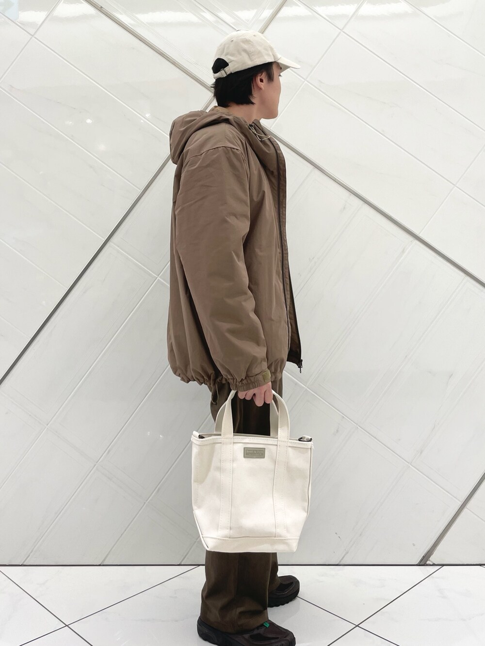 EKALのインサレーションパーカーは軽い着心地とゆったりめなデザインが特徴的なアイテムです。今回はダウンコートっぽくゆったりめにLサイズを着用しました。