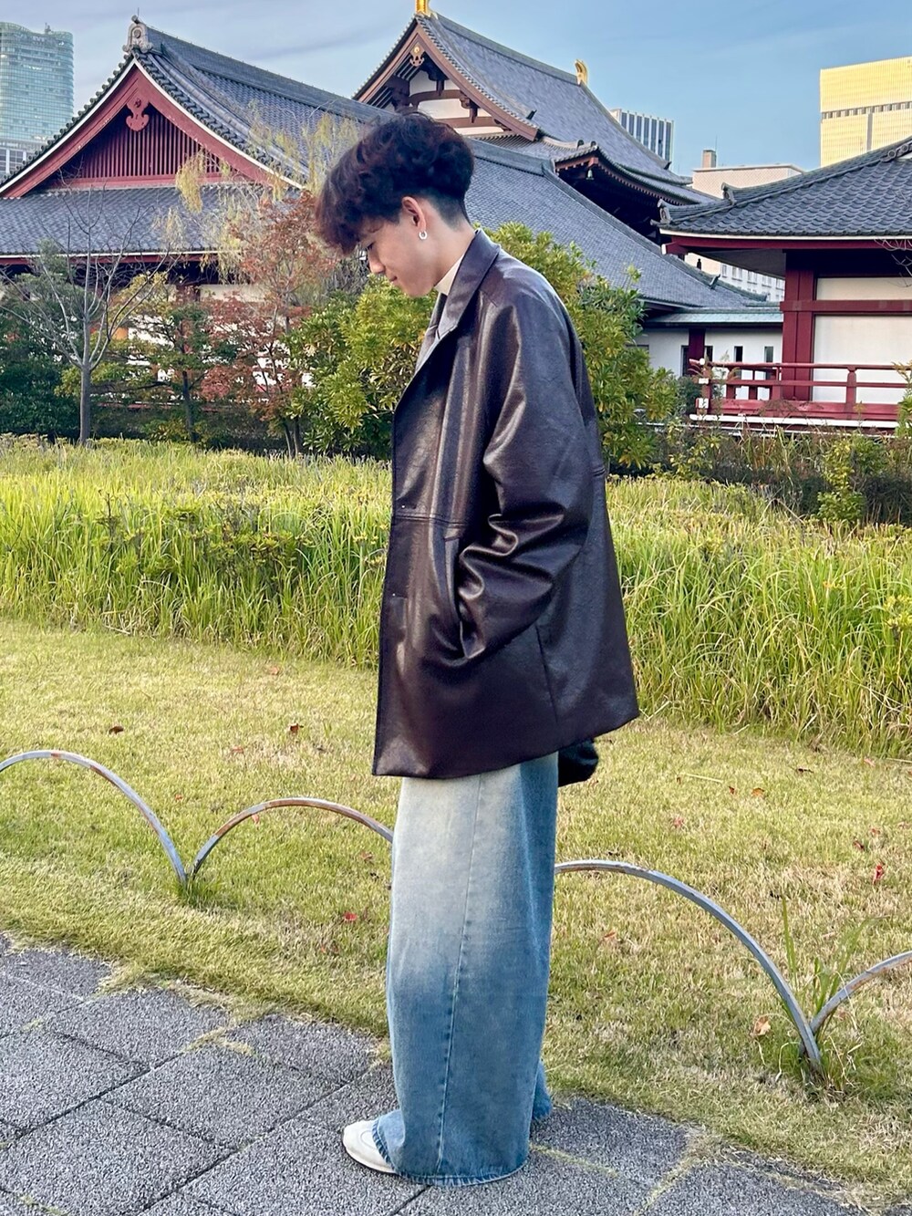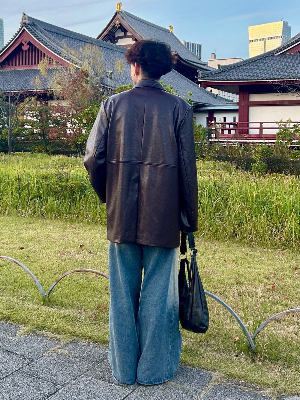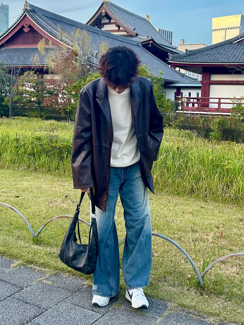 キレイめなジャケットにヴィンテージ加工の入ったデニムを合わせてキレイめカジュアルなコーデに仕上げました✨