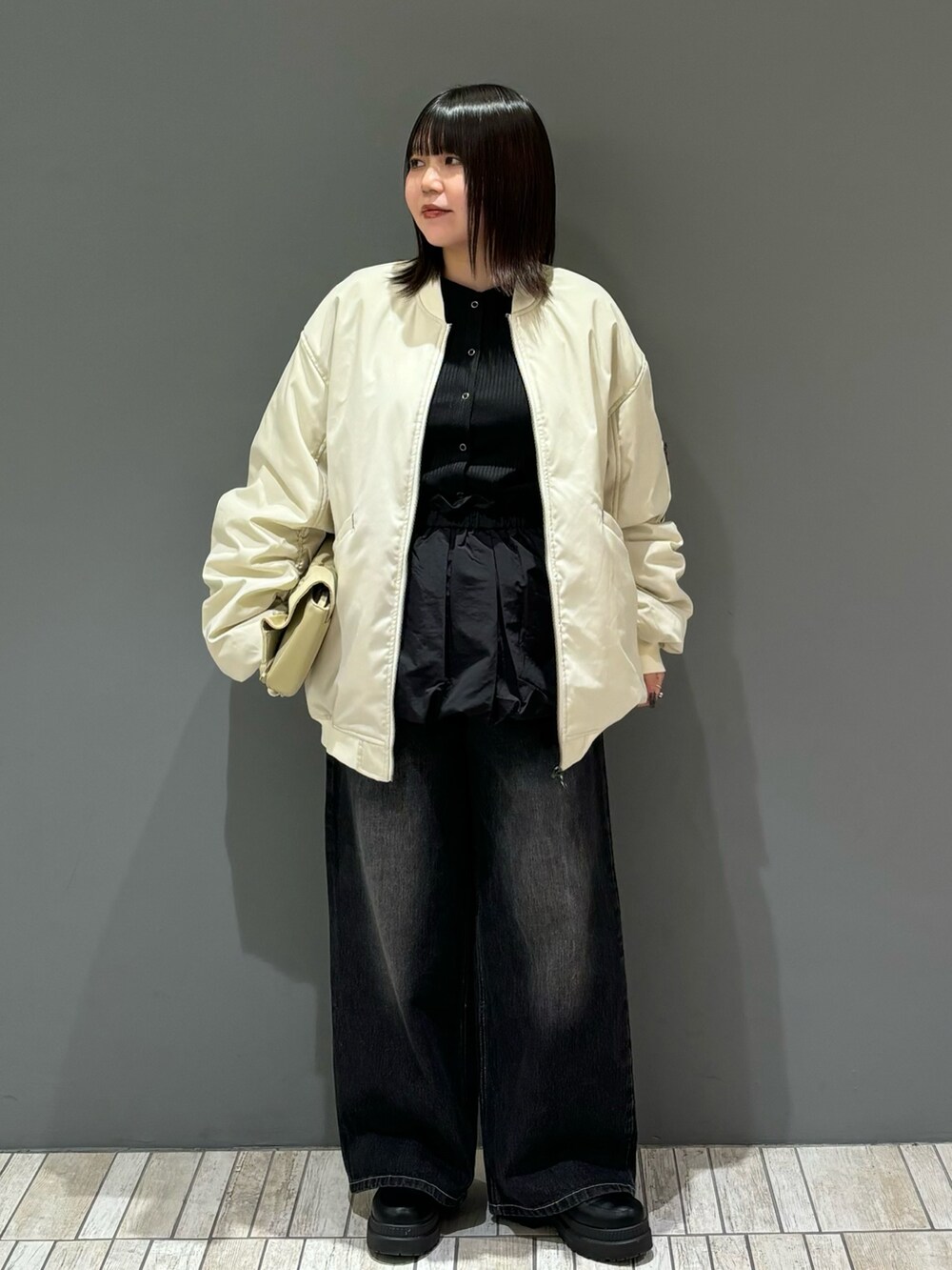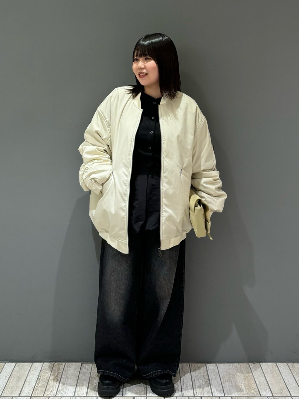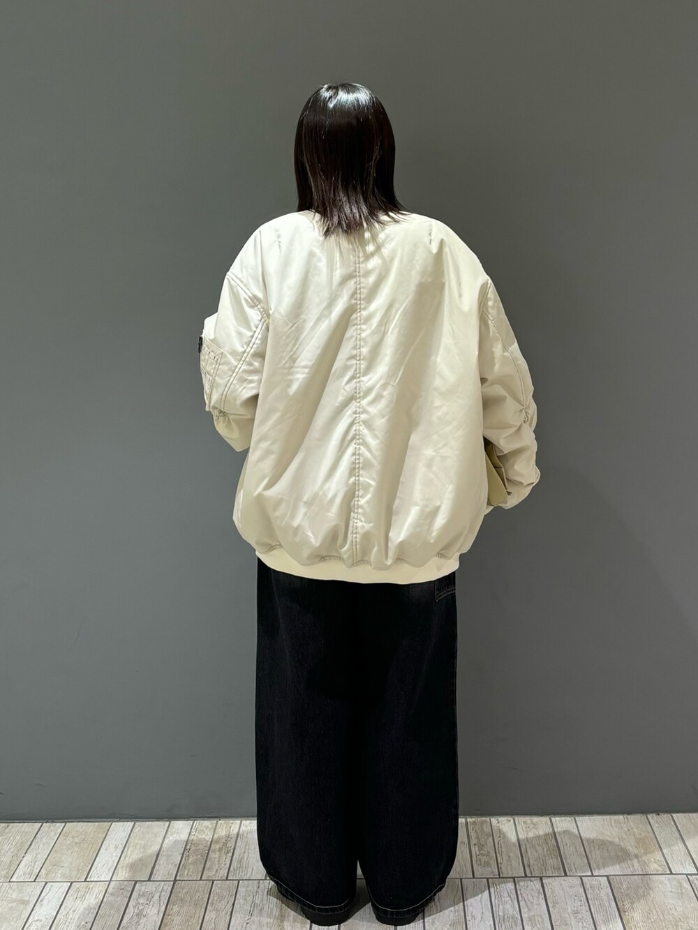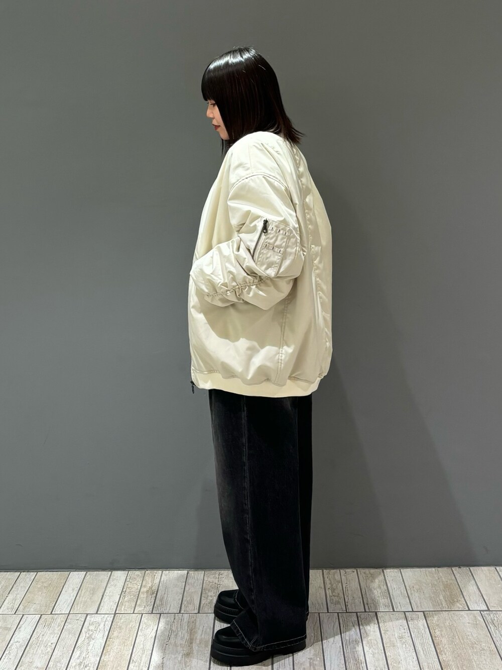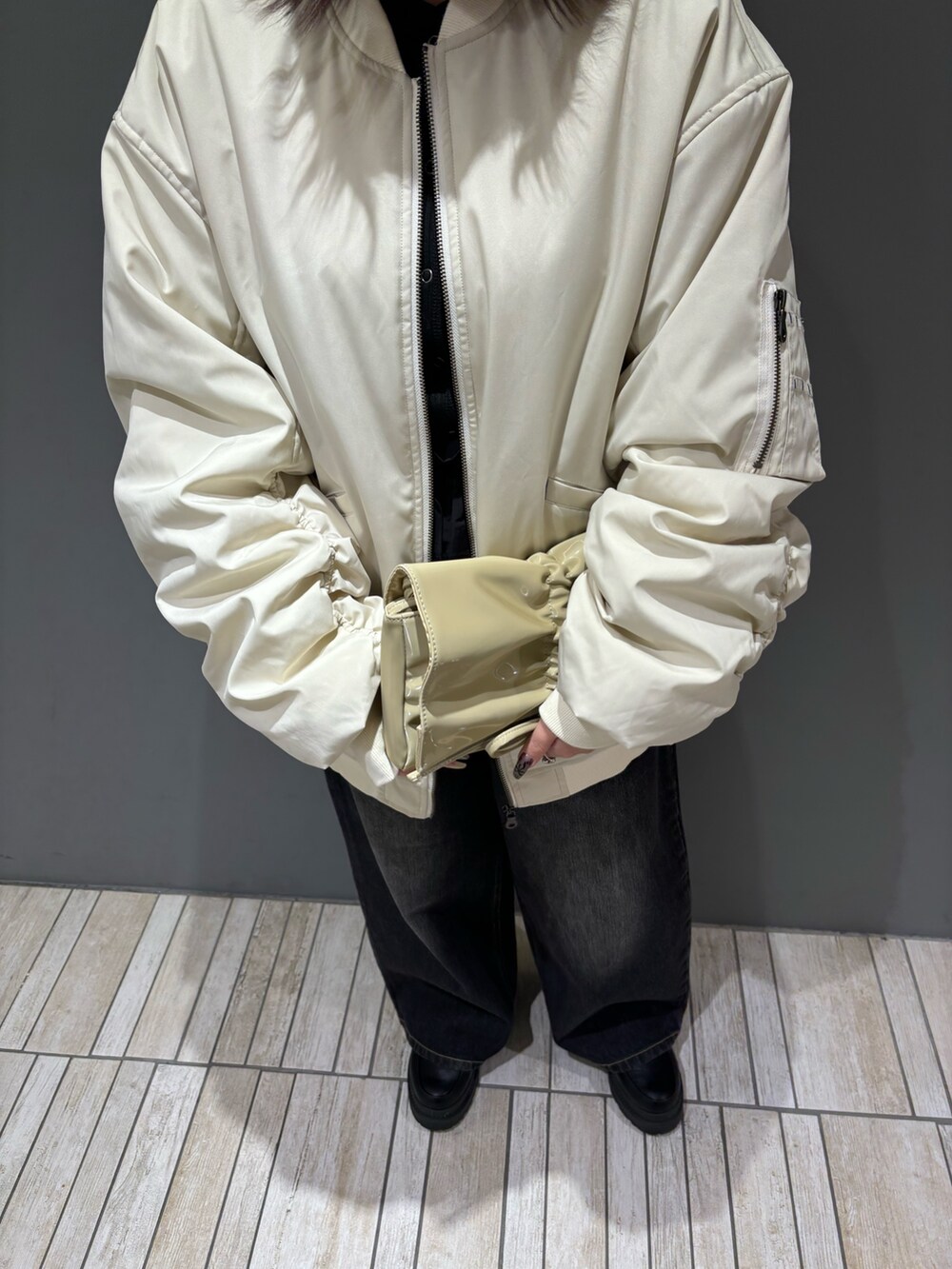 メンズライクなMA-1に女性らしさをプラスした丸山礼さんコラボアイテムです💖袖にたっぷりと施されたギャザーと全体的に丸みのあるシルエットが可愛すぎます...!!!丈感はおしりまで隠れる長さ&オーバーサイズな作りで中に着るトップスを選ばずに着ていただけます👍🏻
