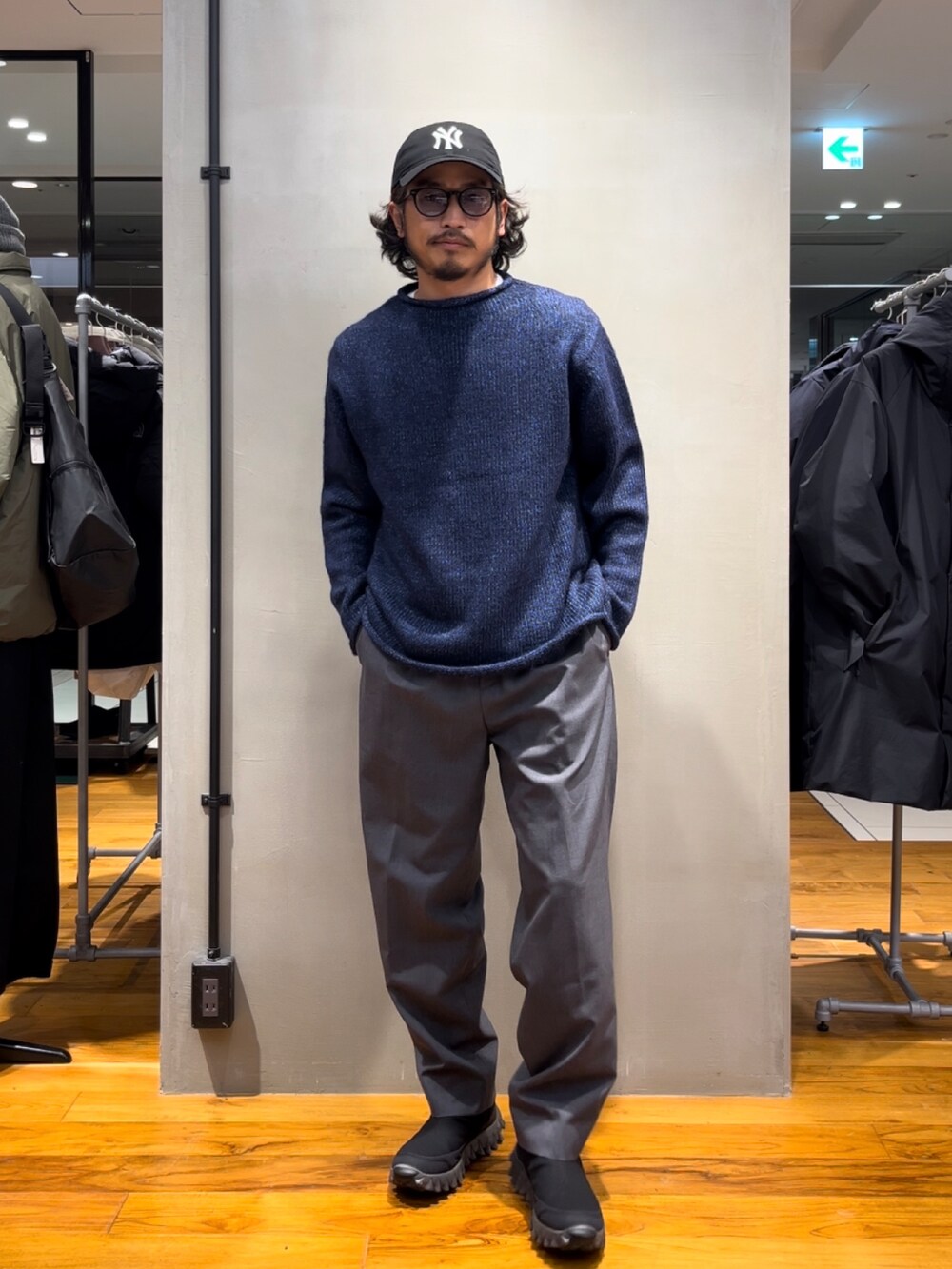 ロールネックニットはデニムカラーでコーディネートしやすく便利です