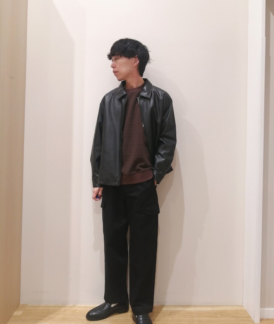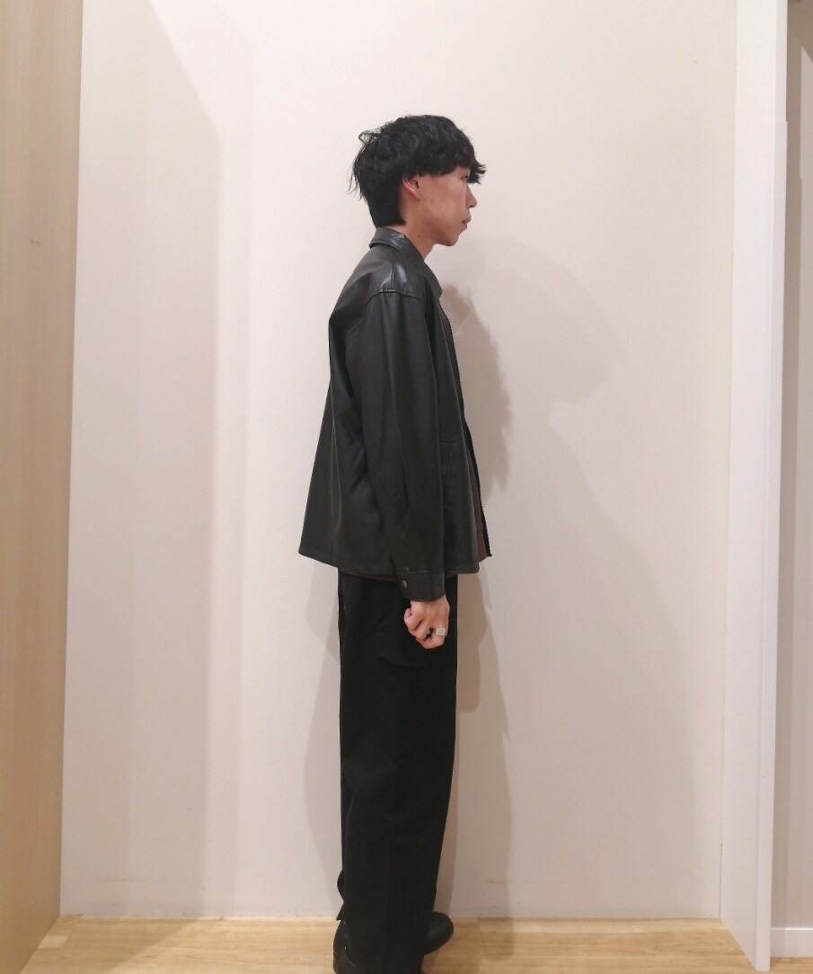 古着加工の施されたレザージャケットを使用したコーデになります。