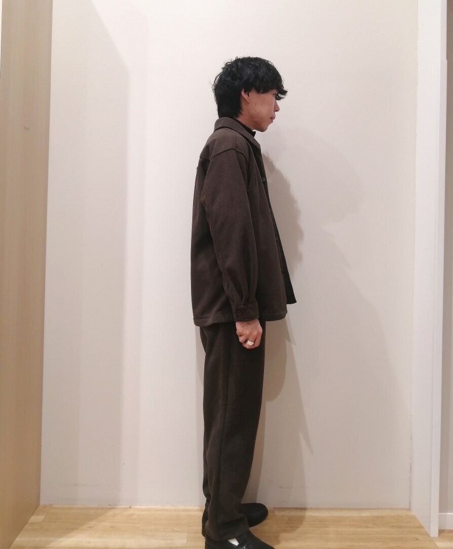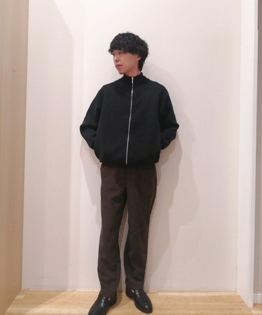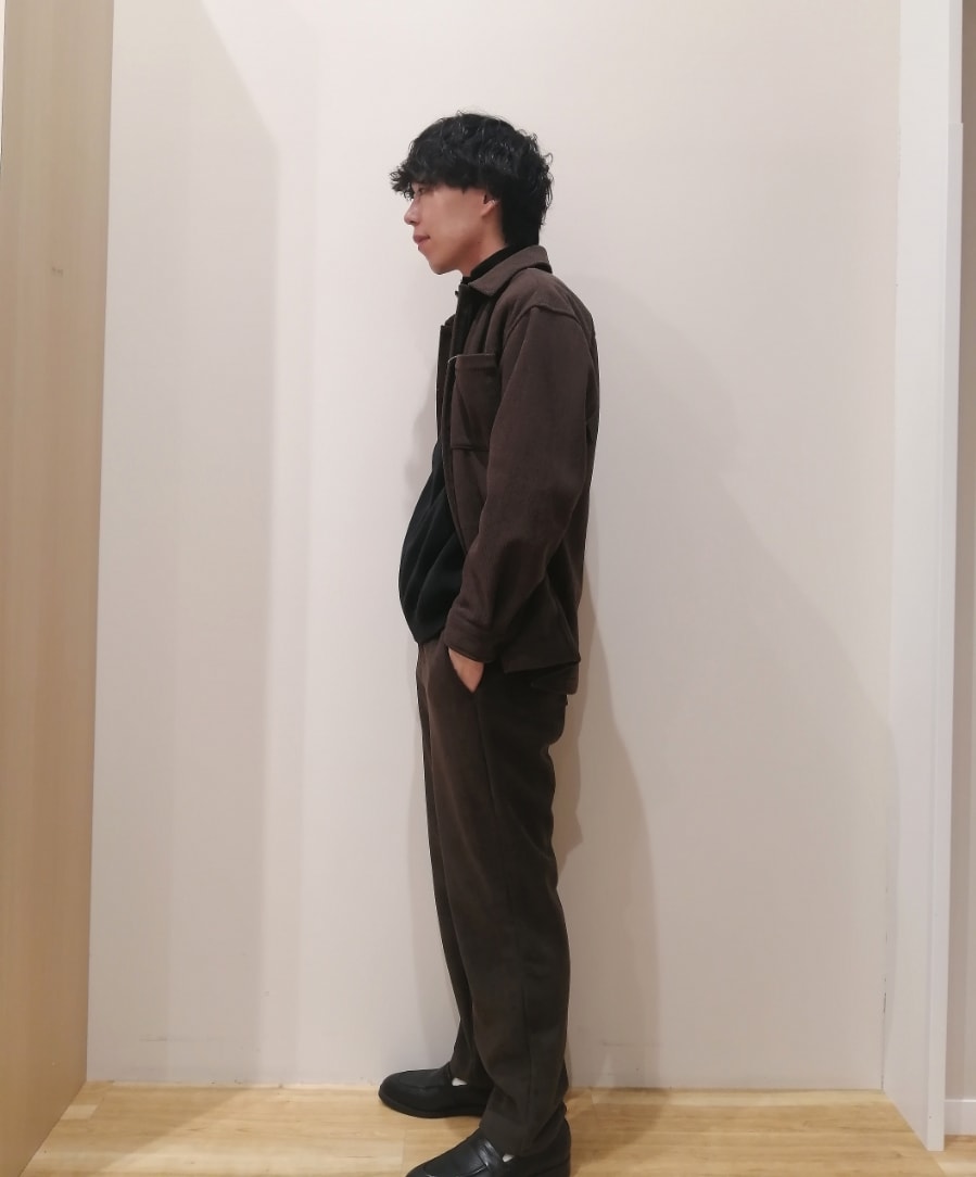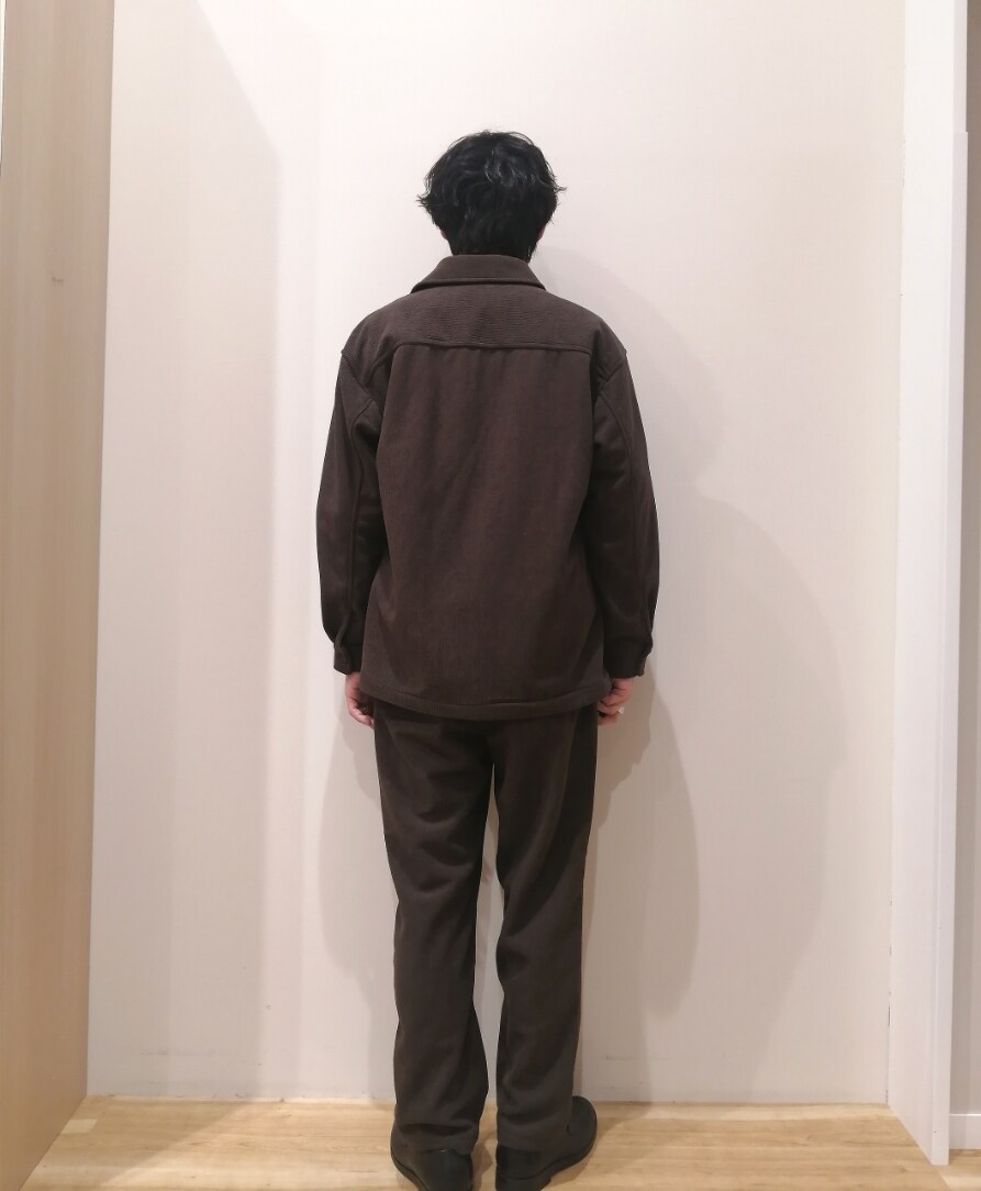 コーデュロイのセットアップスタイルになります。