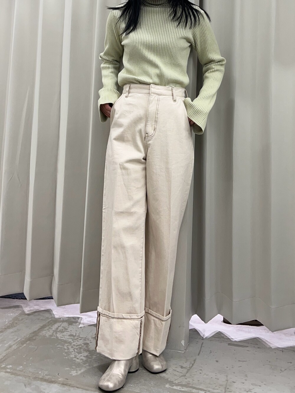 SENSE OF PLACEフレアスリーブリブタートルセーター