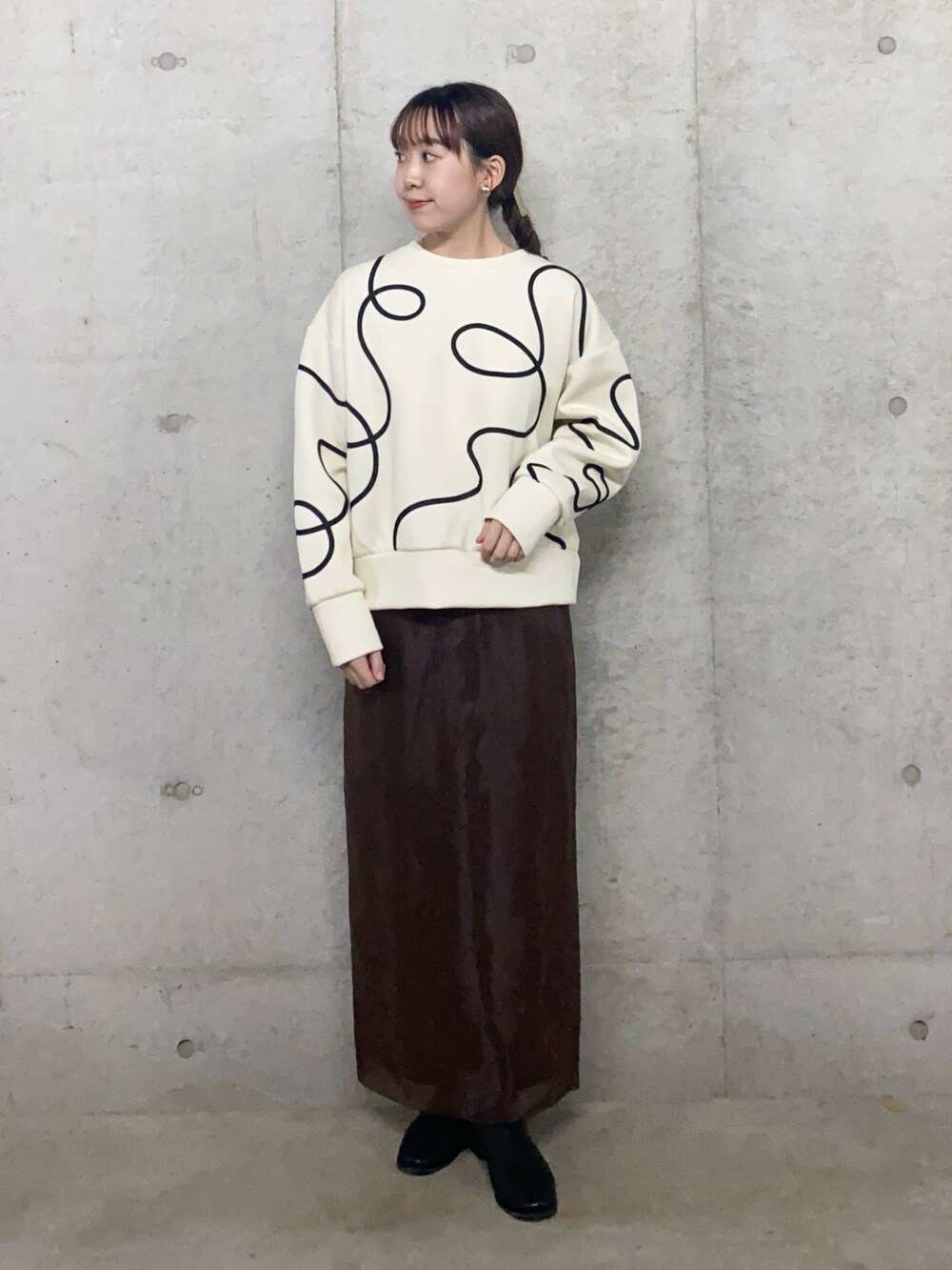 ツヤ感が美しいスカートで、カジュアルなカットソーと合わせると大人かわいい雰囲気に😍