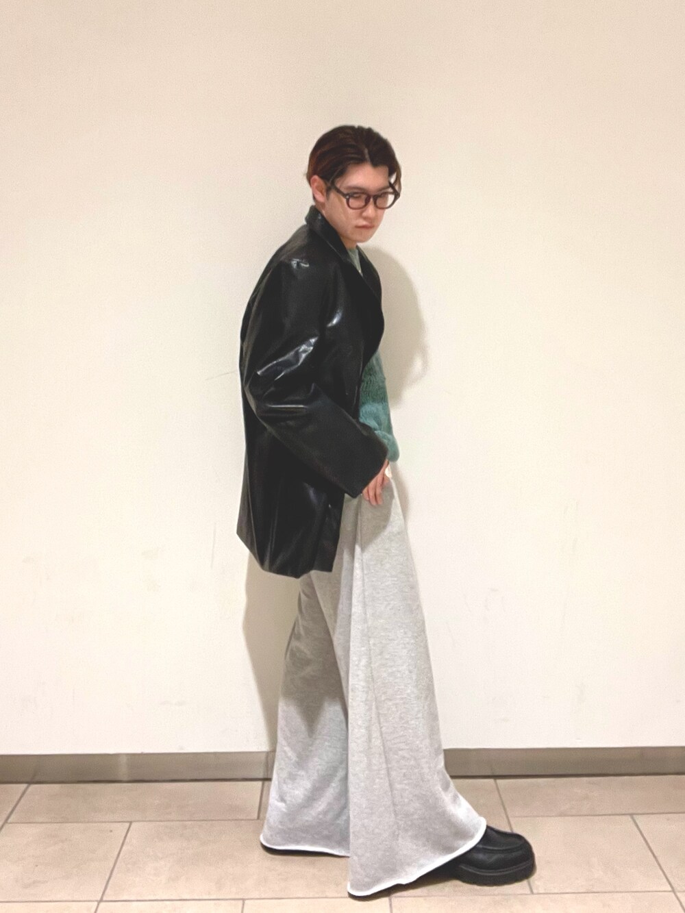 レザージャケットは程よくルーズシルエットで着心地がとても良くインナーにニットやグラフィックTなどを合わせても印象が変わるのでオススメです✨️