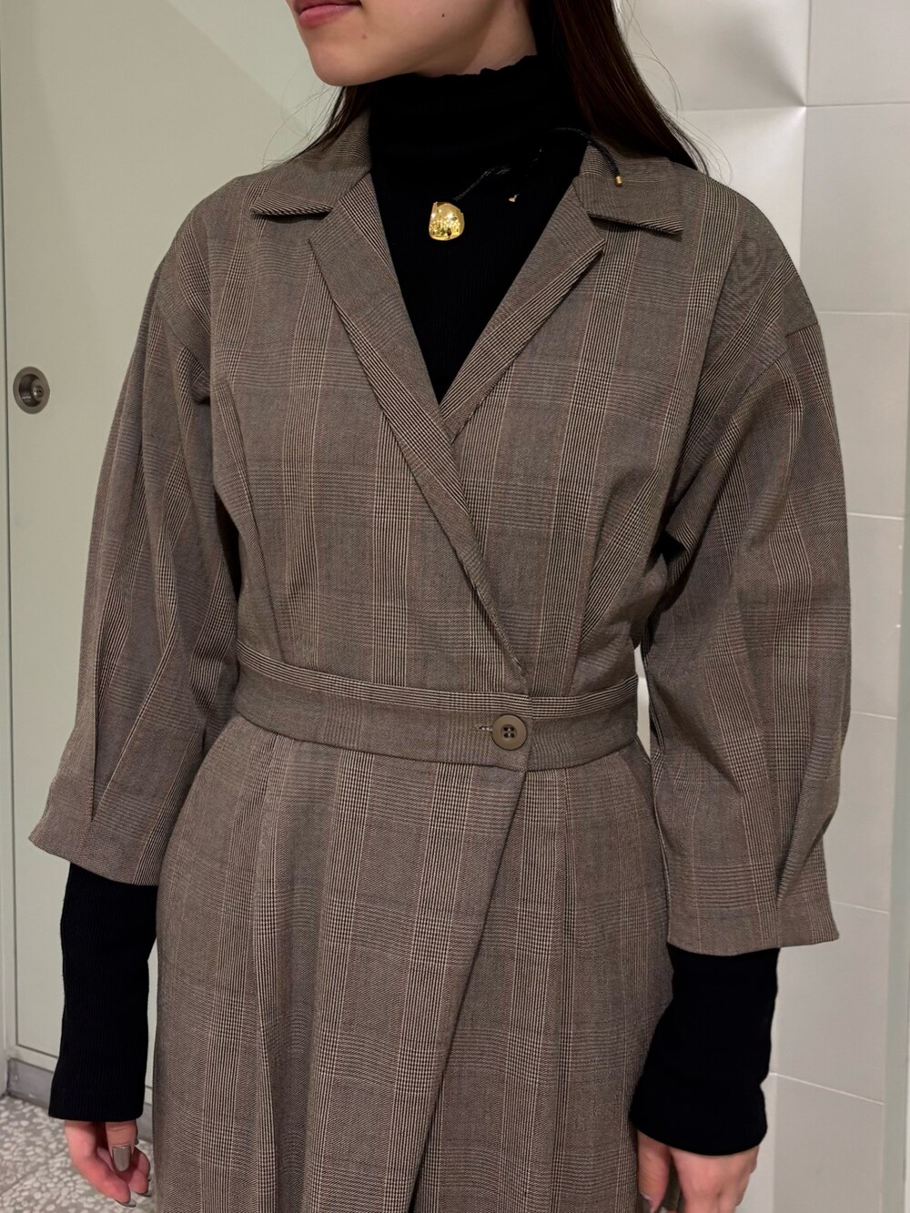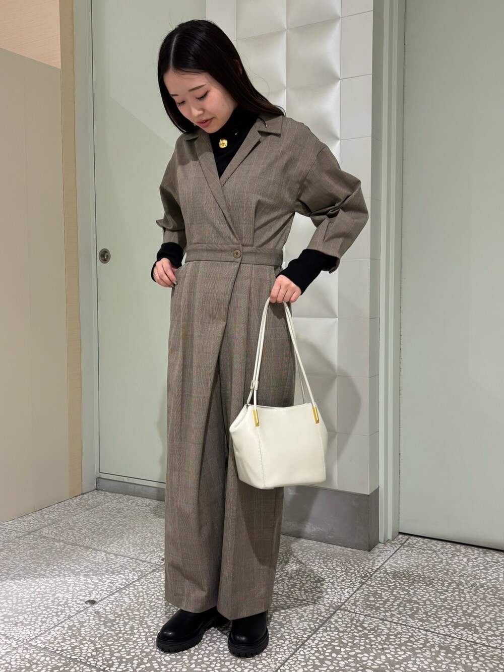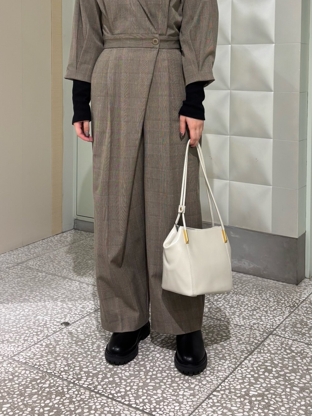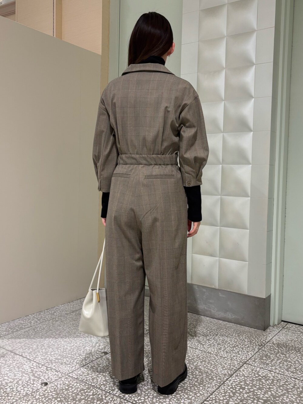 155cmで36サイズ着用です。フラットなシューズでも丈感に余裕があります。インナーに薄手のタートルニットなどを合わせるとスッキリとしたバランスで着用いただけます。