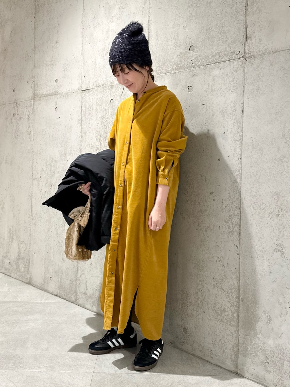 今回は、コーデュロイのワンピースを合わせた、大人カジュアルコーディネートです。