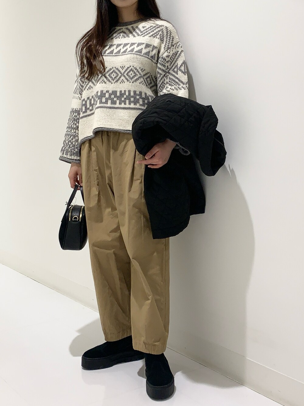 ゆったりとしたサイズ感で厚手のニットを合わせても動きやすく余裕のサイズ感でした。