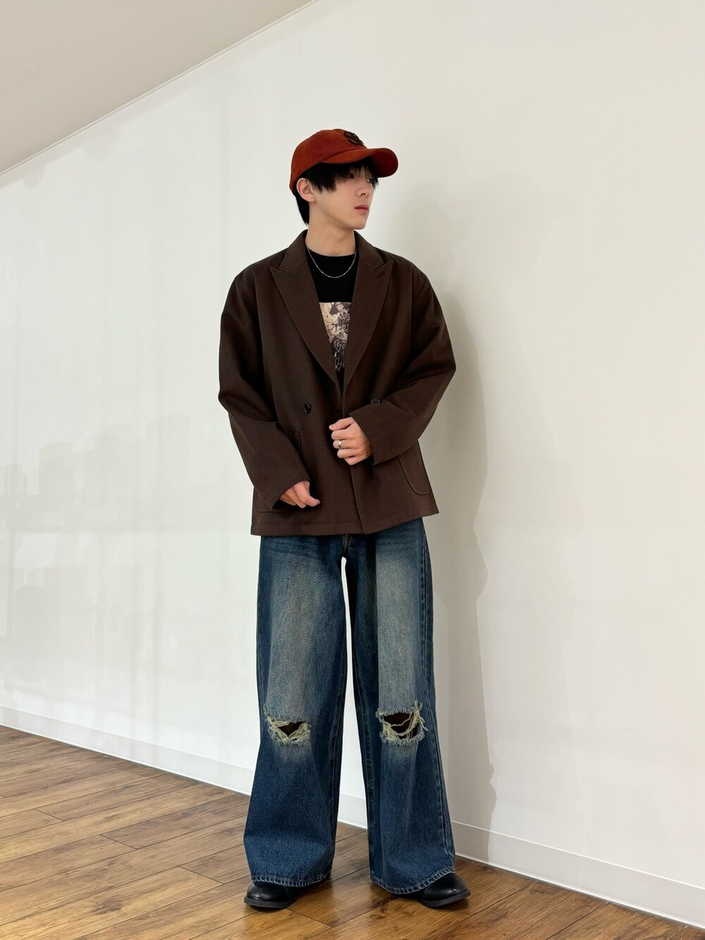 『UR TECH』ヘリンボーンダブルテーラードジャケット