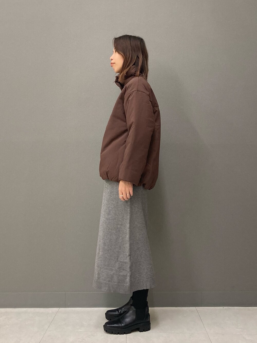 可愛いだけでなくスタンドカラーになるので首周りも暖かく、中もたっぷり着込めるサイズ感!ブラウンのアウターって新鮮で良いですよね☕ダークブラウンではなくチョコレートカラーなのも以外に無いのでは…?