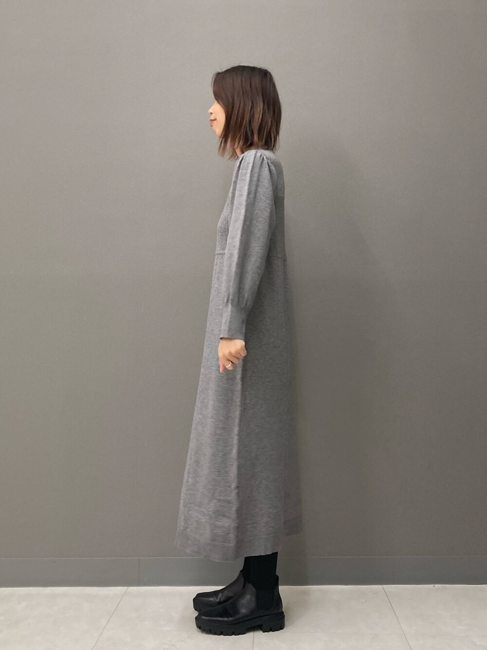 合わせたワンピースもリブ編みの部分がメリハリを付けてくれて女性らしさ満点◎ホリデーシーズンのデートコーデに如何でしょうか(^^)