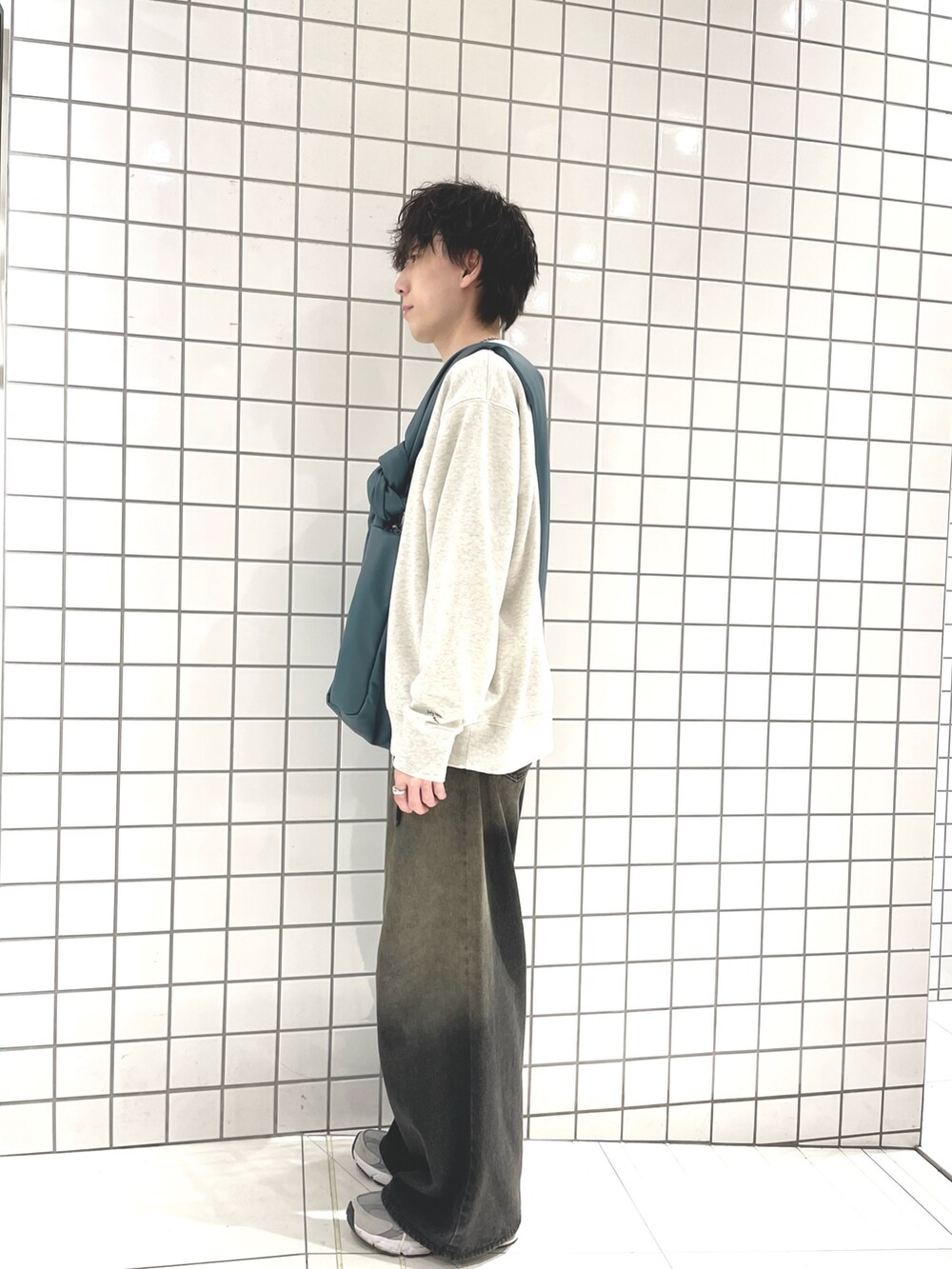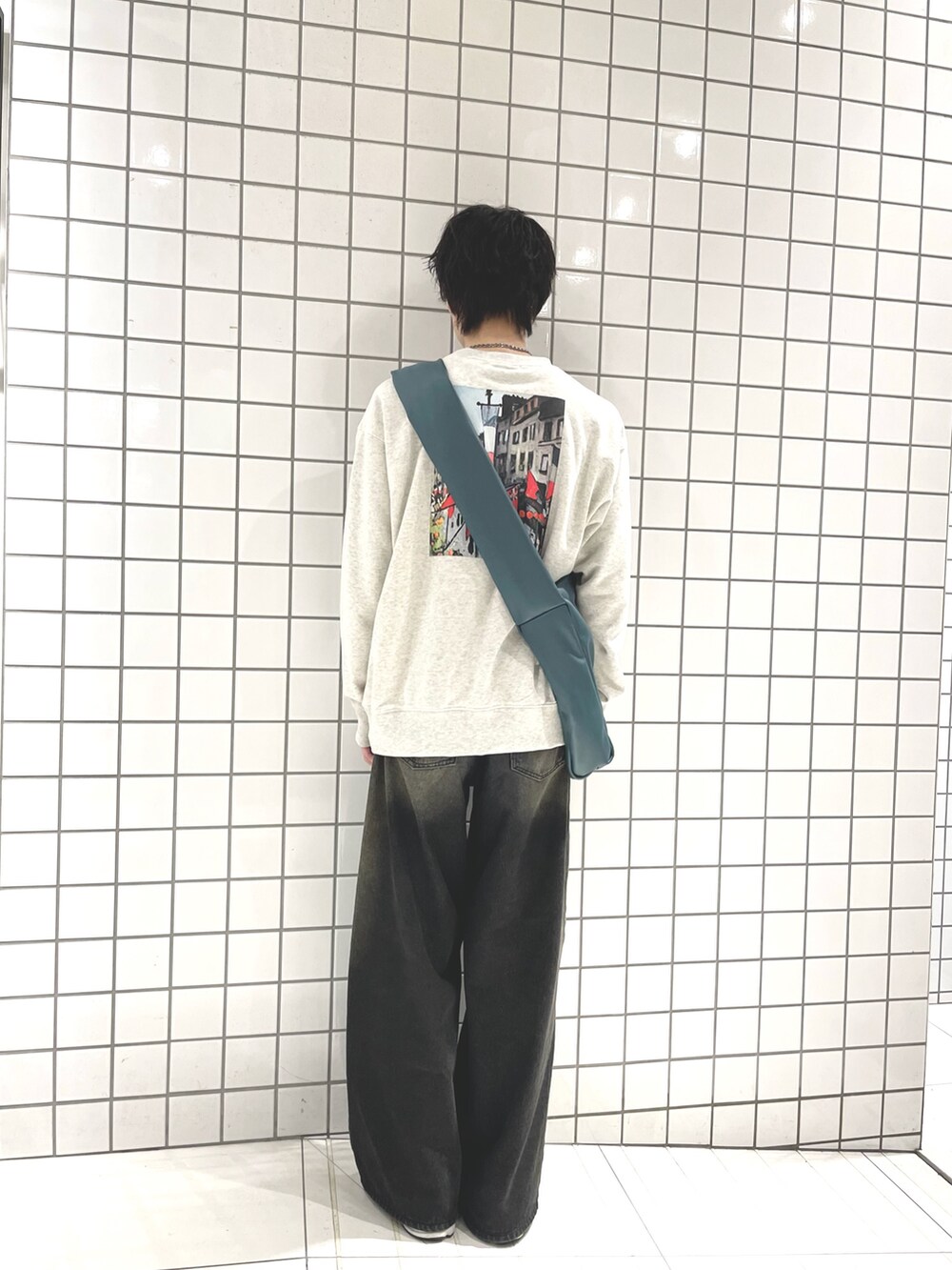 バックプリントのスウェットを使ったラフなコーディネートです。