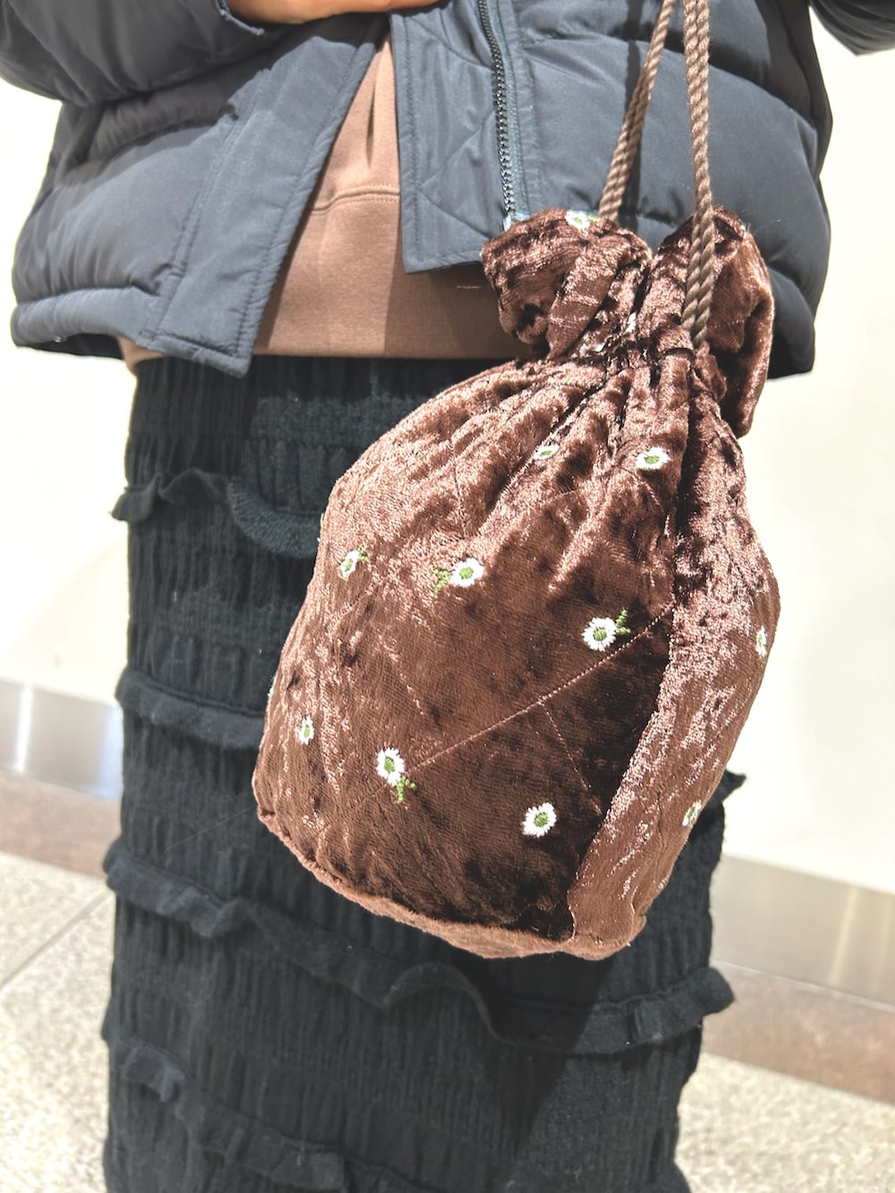 Sonny Labelフラワー刺繍ベロアミニショルダーバッグ