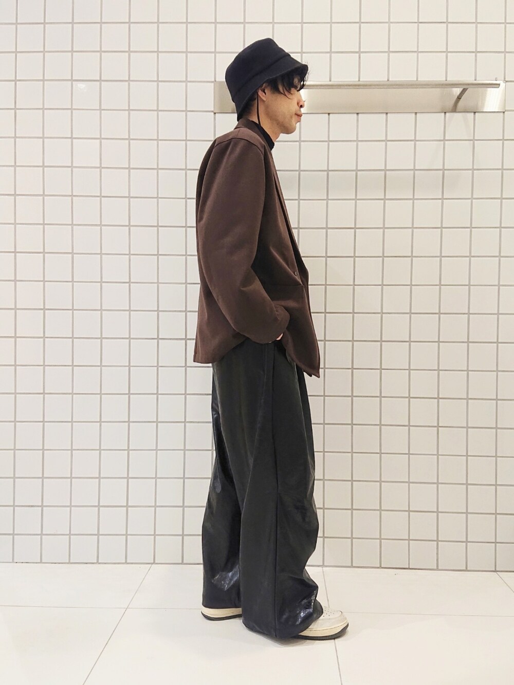 ジャケットはきれいめスタイリングにはもってこいで、生地感も集めでこの時期にはぴったりです〇